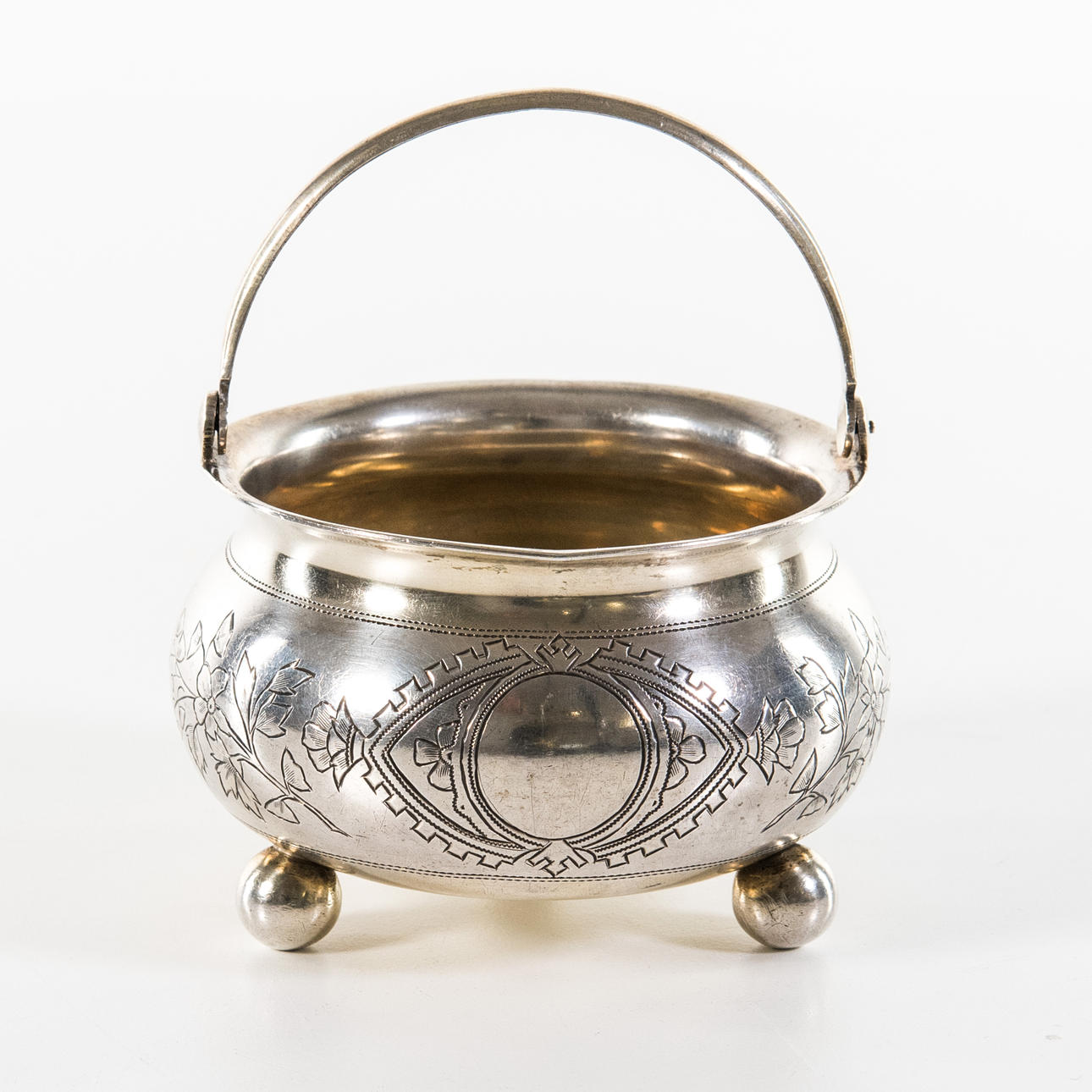 Halkaisija 9 cm, korkeus 6 cm, paino noin 142 g, mestarinleima ИC, 1896-1908.