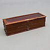 Kulumaa, pieniä vaurioita. Laatikko myöhemmällä nupilla. 3 laatikonjakajaa puuttuu.