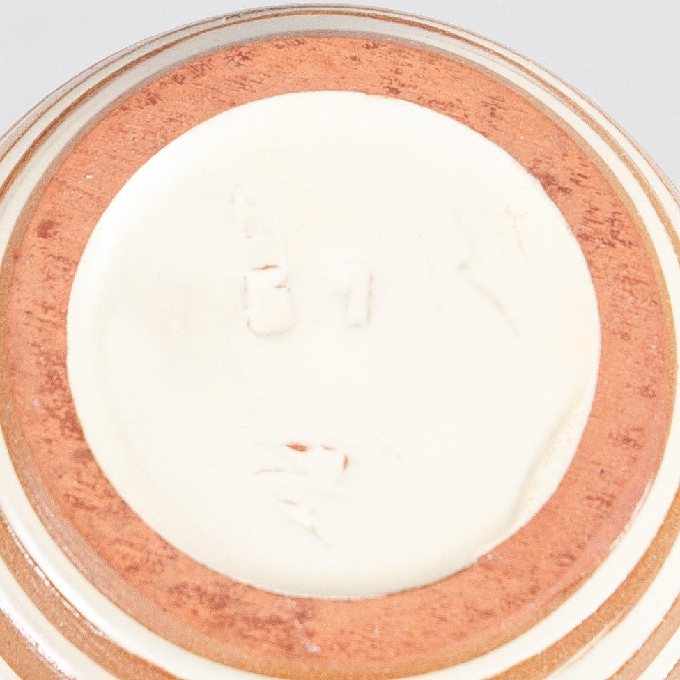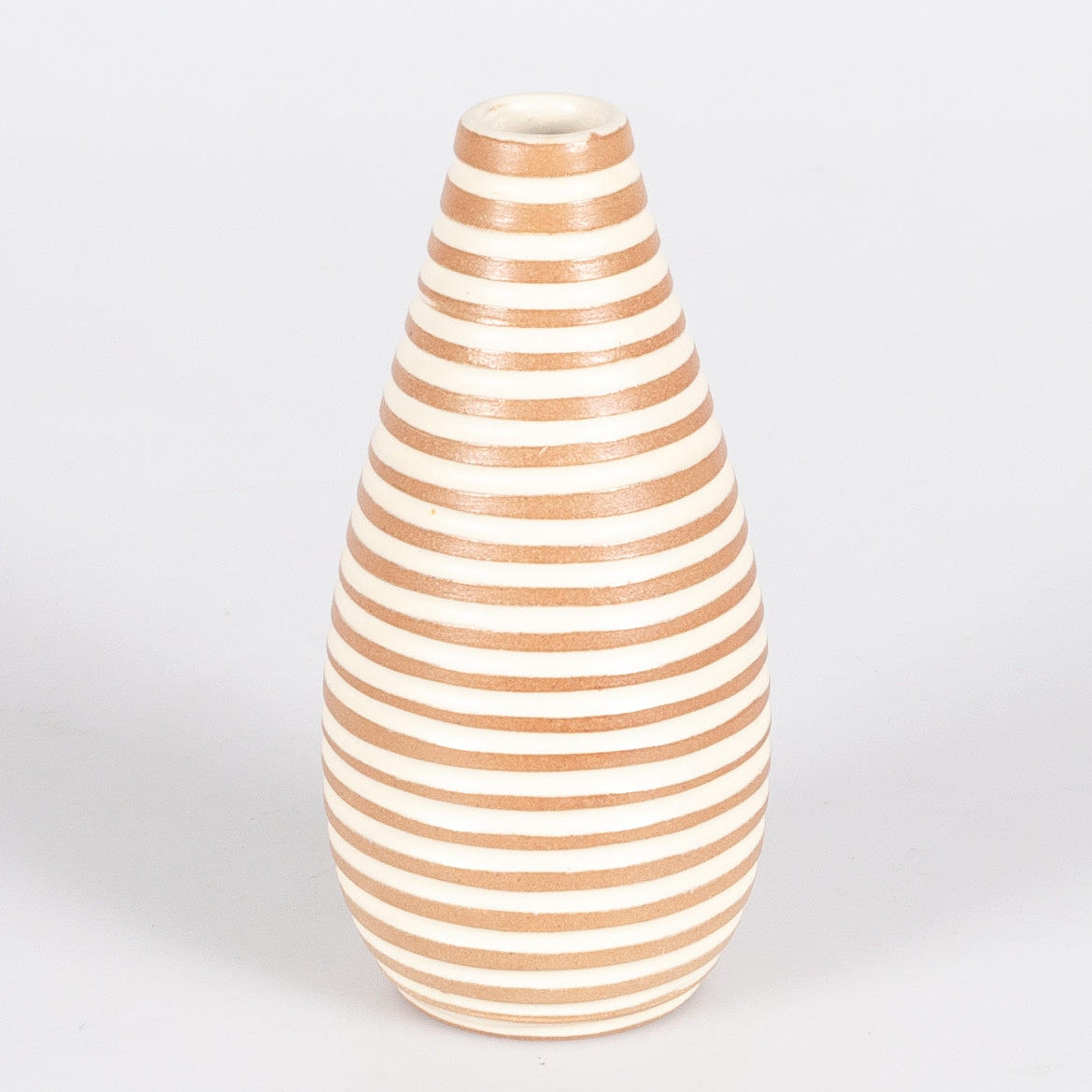 Maljakko kohokuvioidulla vinoraidalla valkoista ja lasitettua tavaraa Markt Ekeby, 672, Abg Korkeus 16 cm.