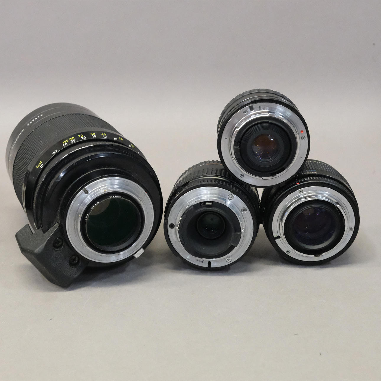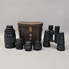 Kameran linssi, Nikon, 35-70 mm, 1:3,3-4,5 kameran linssi, Nikon, Reflex-Nikkor-C, 1:8 f=500 mm. Kameran linssi, "Vivitar 2x Macro Teleconverter", kameran linssi, "Sigma mini-wide II" 1:2,8 mm. Kenttäkiikarit, Hunter 7 x 50, nahkakotelossa.