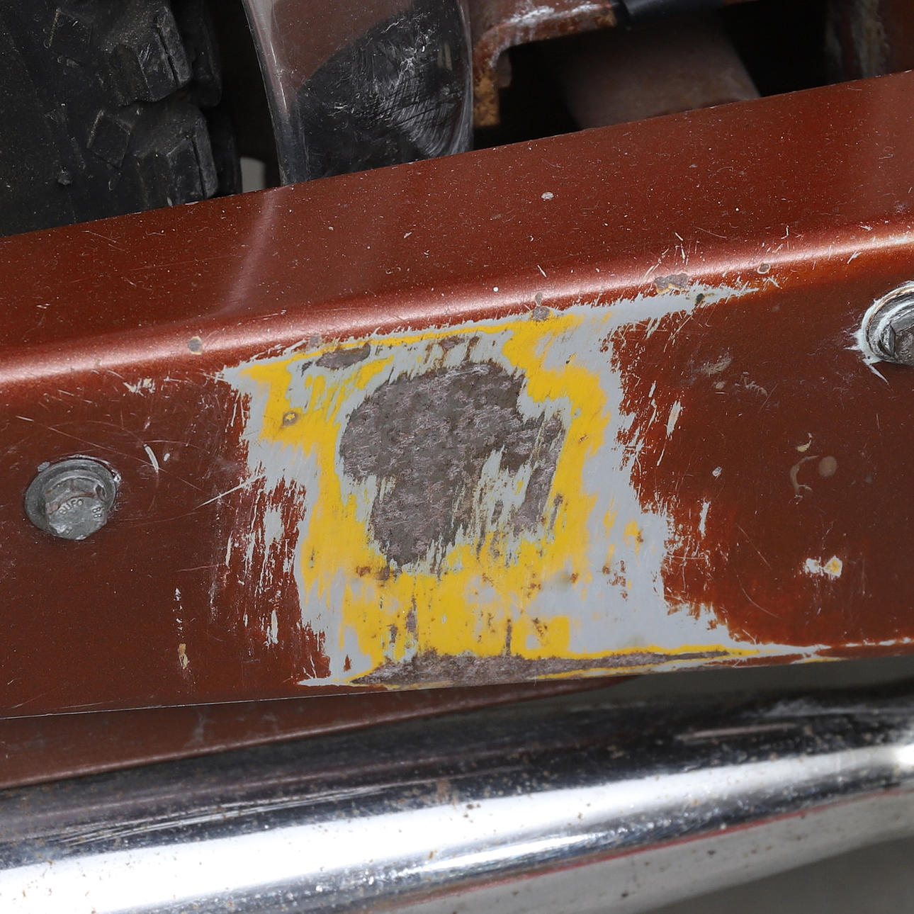 Käyttökuluma. Naarmuja ja jälkiä. Uudelleen maalattu. Värin menetys. Toimii tietojen mukaan, toimintatakuuta ei myönnetä.