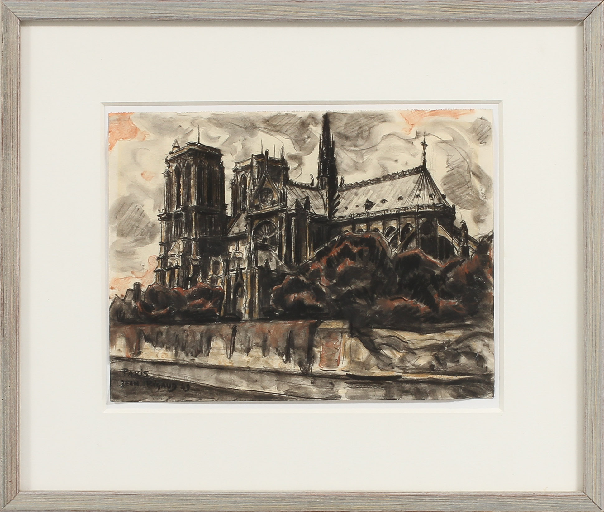 240286. JEAN RIGAUD. Notre Dame, akvarelli, kyltti o dat -49.