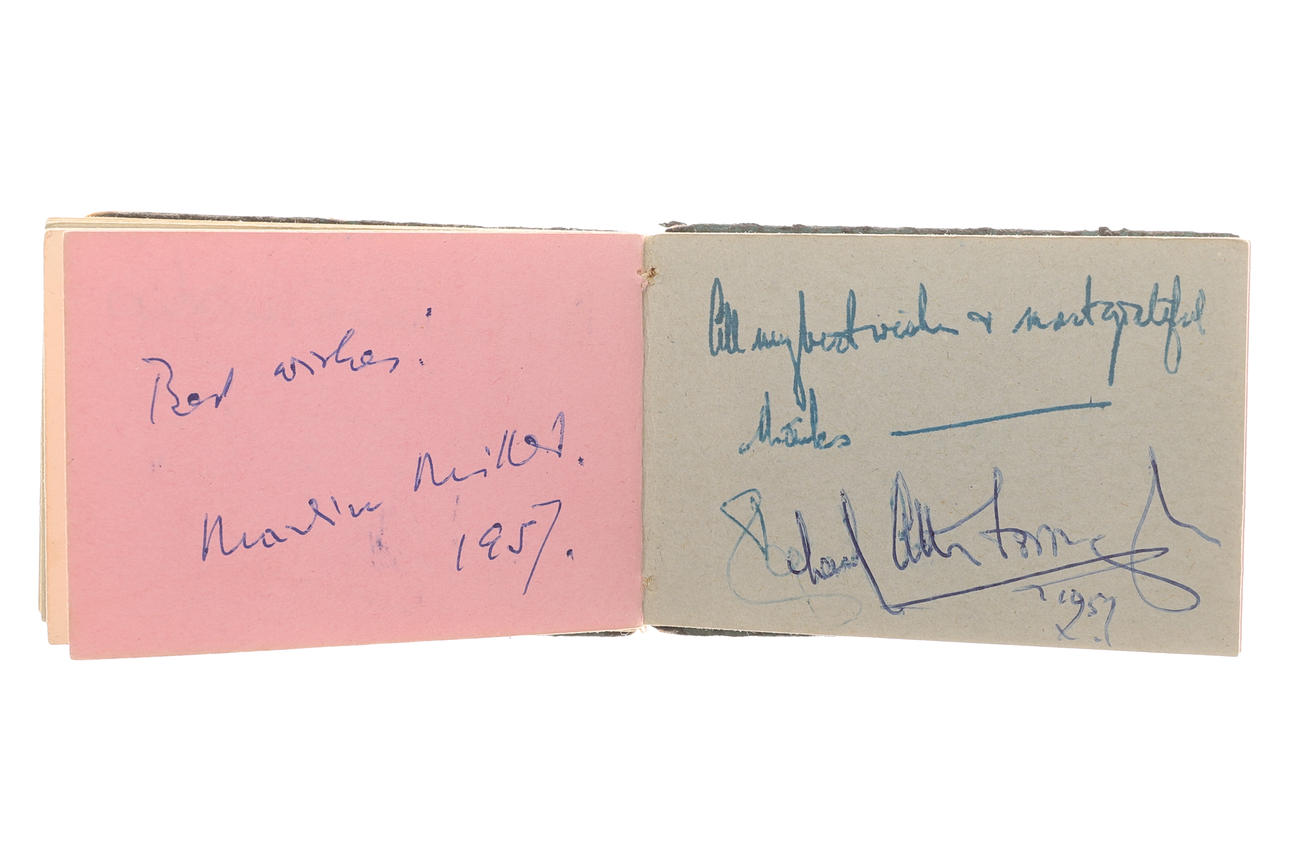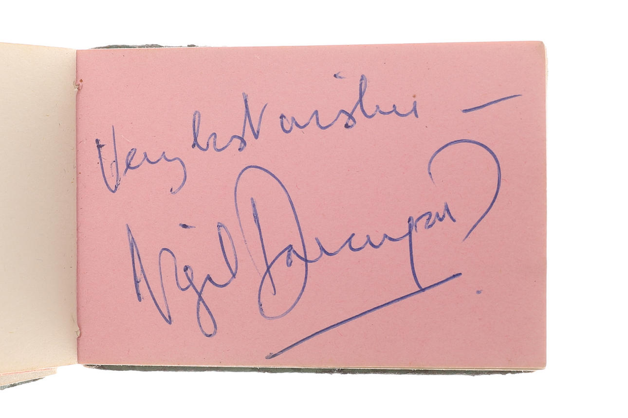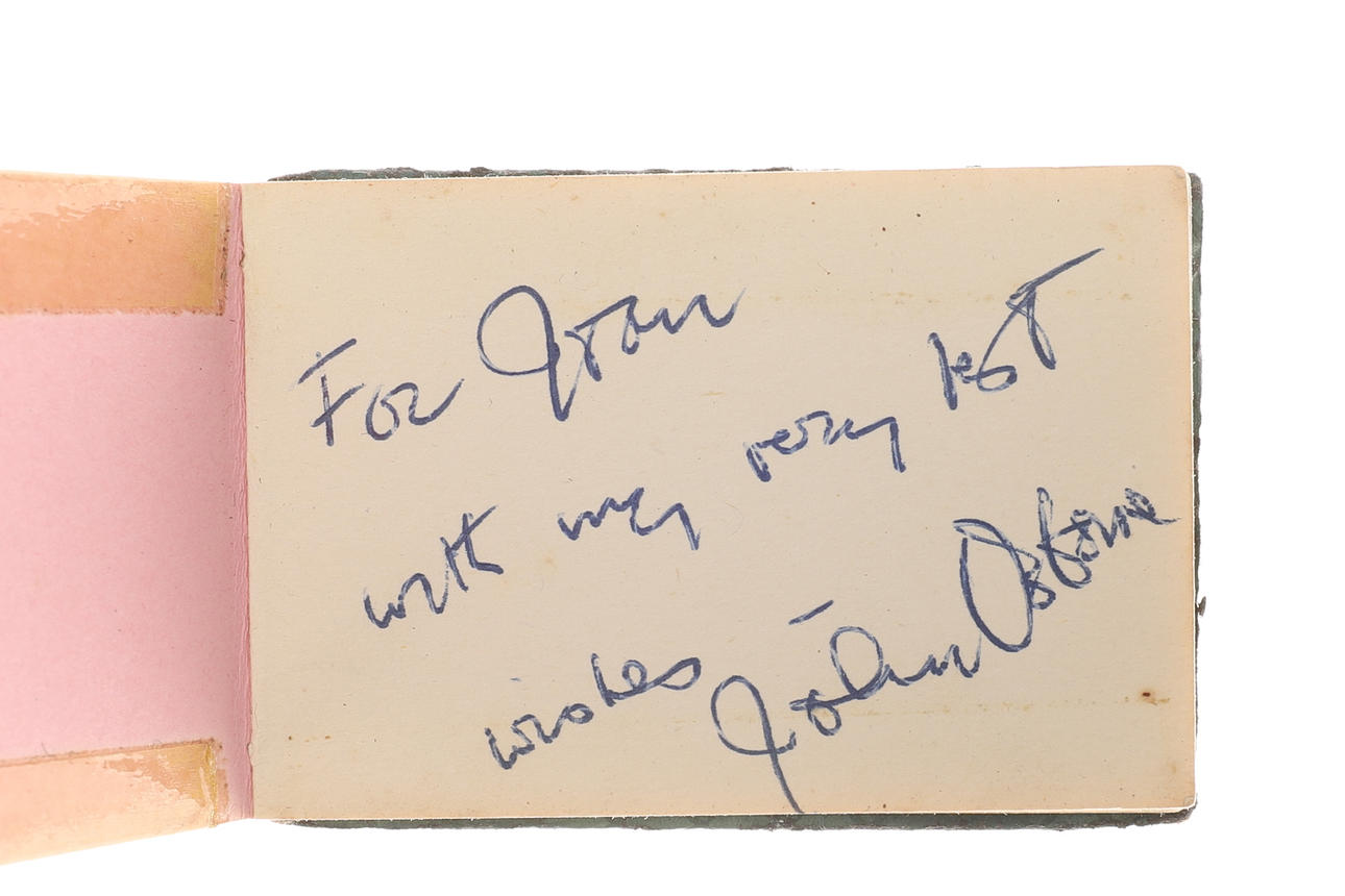 Sisältää erilaisia nimikirjoituksia, mukaan lukien: Robert Stephens, Allan Bates, Tony Richardson, Donald Sinden, John Osbourne, Nigel Davenport, Laurence Harvey, Peggy Ashcroft, Beryl Reid, Joan Moffat, Jean Martin, Beatrice Redding, Geraldine McEwan, Ian Carmichael, Zachary Scott , Richard Pasco, Mandy Miller, Richard Attenborough, George Benson.