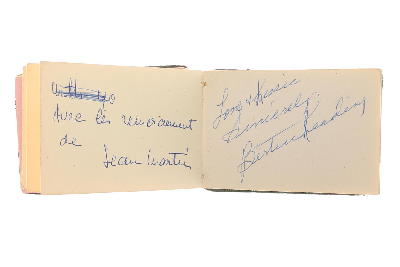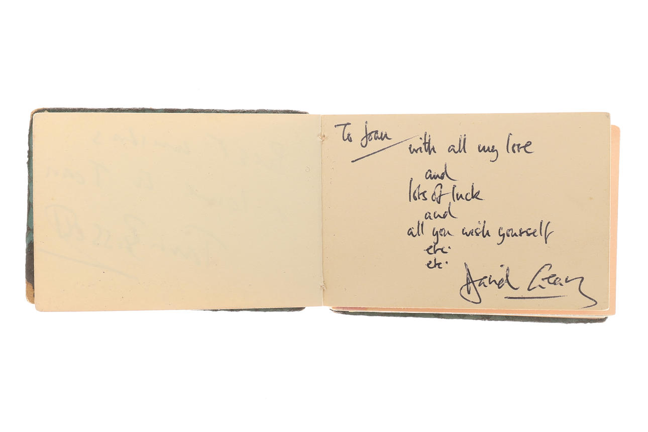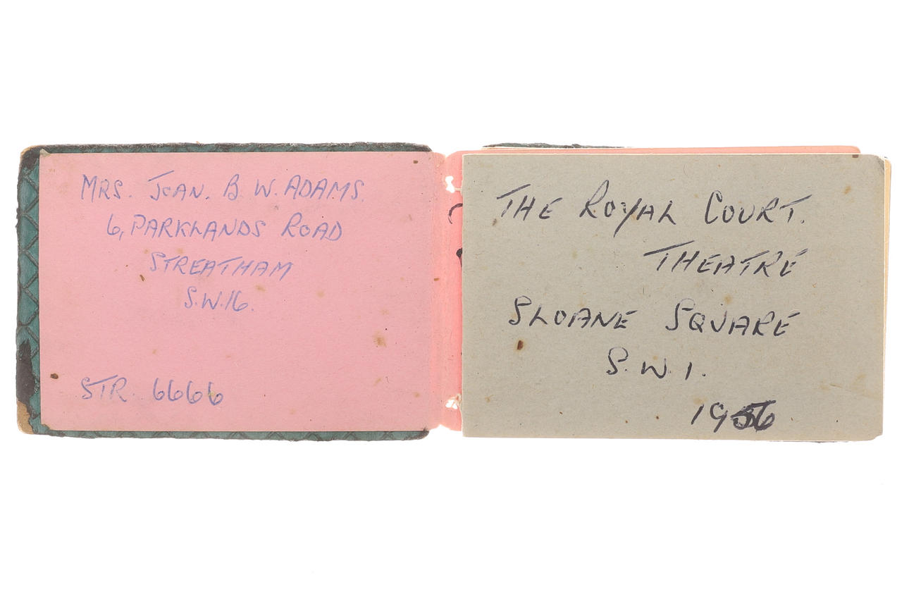 Sisältää erilaisia nimikirjoituksia, mukaan lukien: Robert Stephens, Allan Bates, Tony Richardson, Donald Sinden, John Osbourne, Nigel Davenport, Laurence Harvey, Peggy Ashcroft, Beryl Reid, Joan Moffat, Jean Martin, Beatrice Redding, Geraldine McEwan, Ian Carmichael, Zachary Scott , Richard Pasco, Mandy Miller, Richard Attenborough, George Benson.