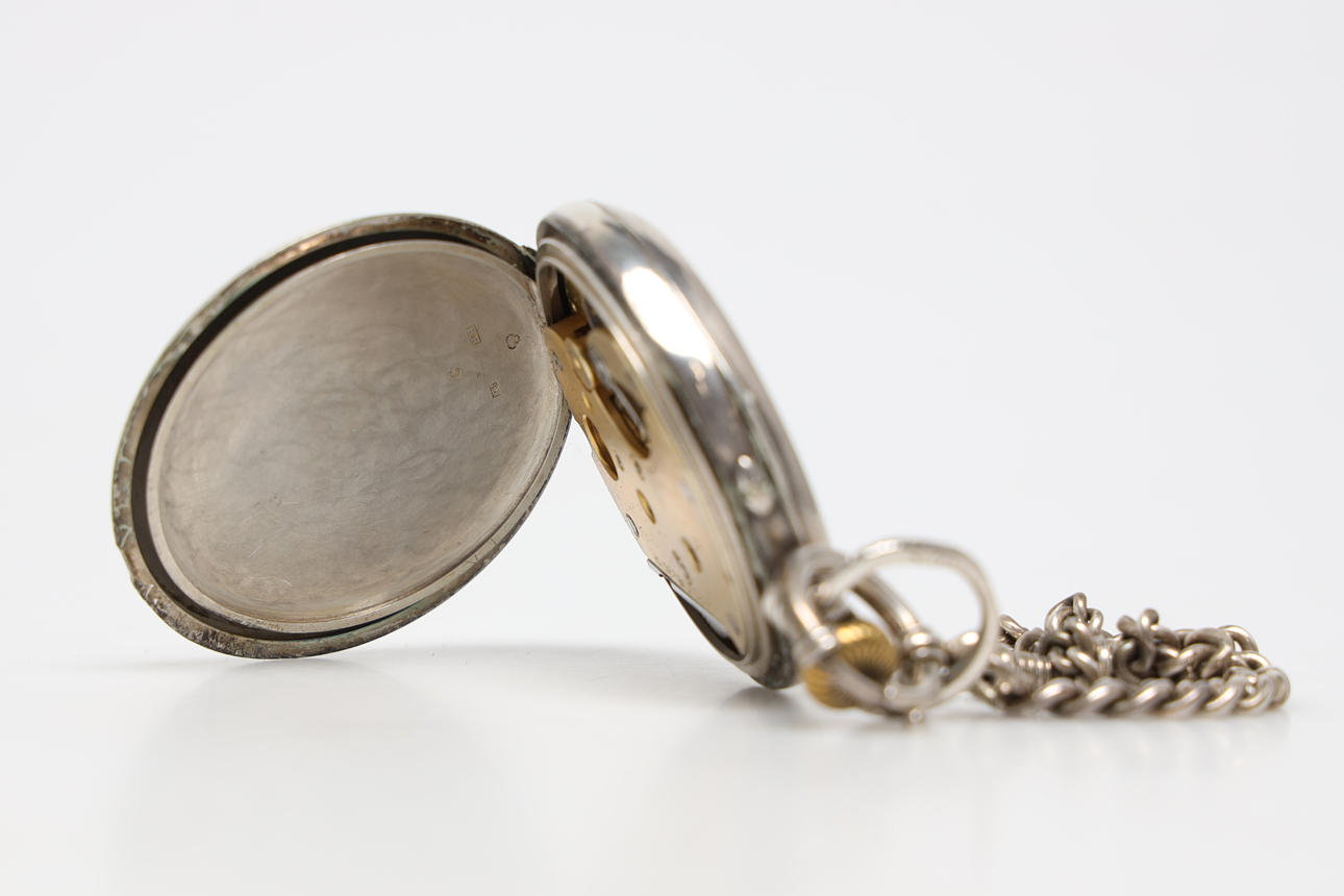 hopea, sisäkotelo hopeaa, ankkurikäytävä, keskisekunti, kaliiperi Z, sarjanro 3845. Ympärysmitta 50 mm.