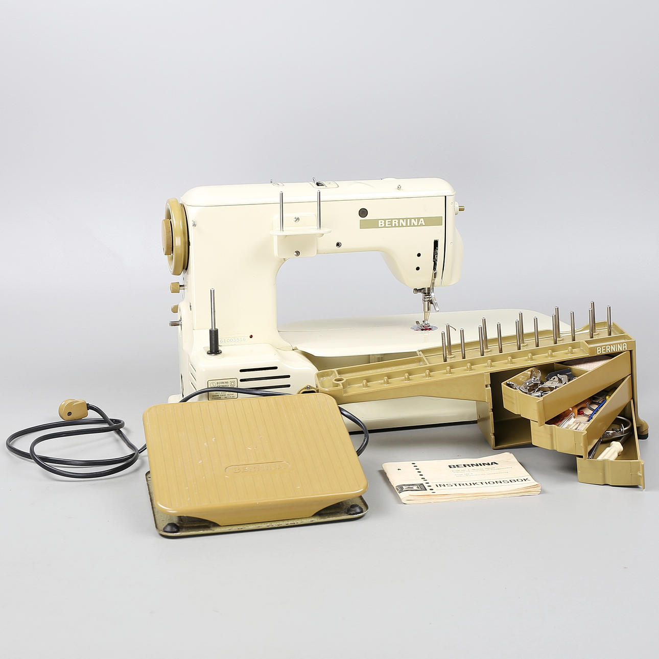 Ompelukone Bernina Record 730 pussissa. Sveitsiläinen valmistus.
