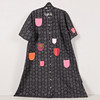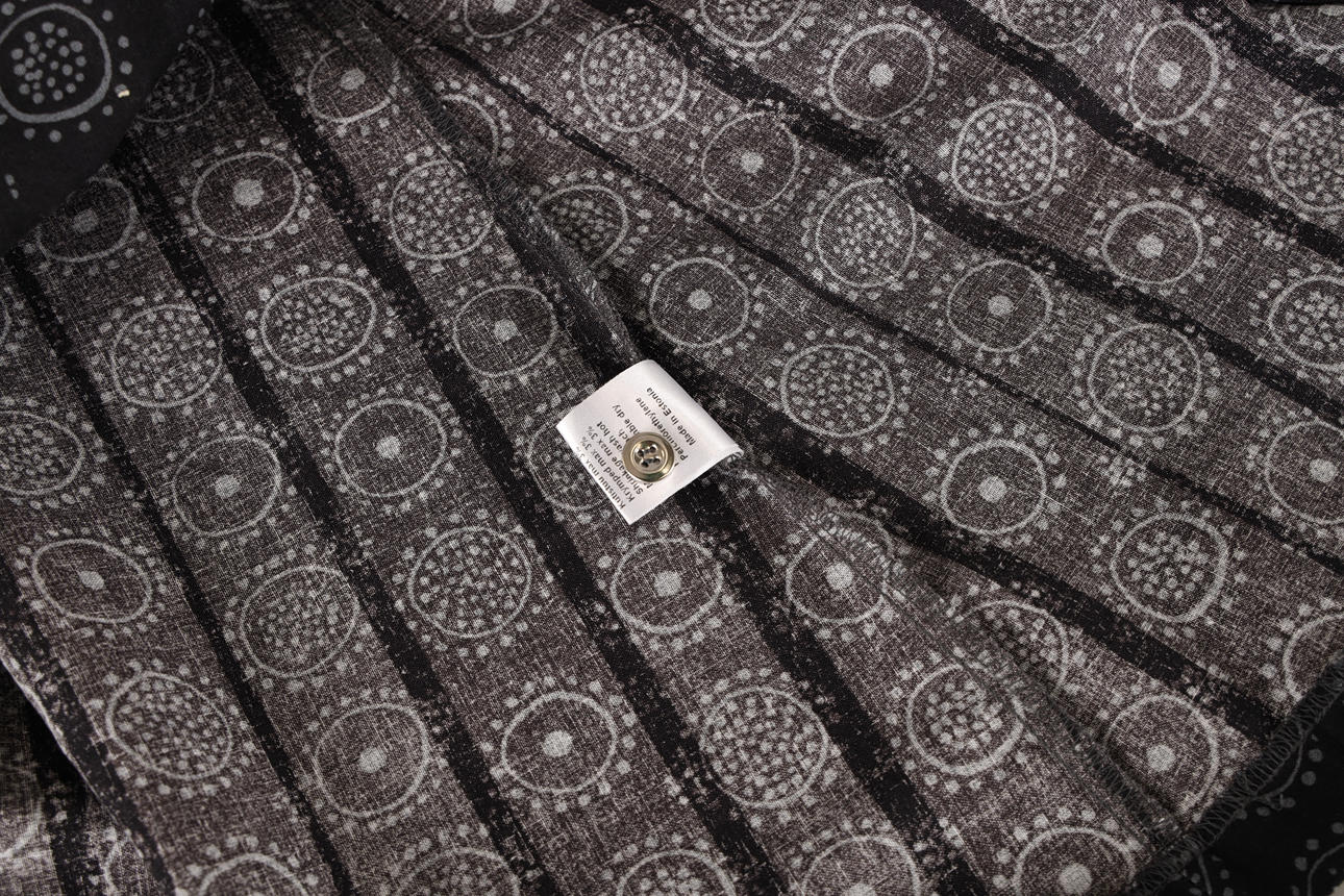 Nykyaikainen tuotanto. Kiinnitetään edestä napeilla. Mukana ylimääräinen painike. Pituus n. 110 cm, rinnan leveys n. 120 cm.