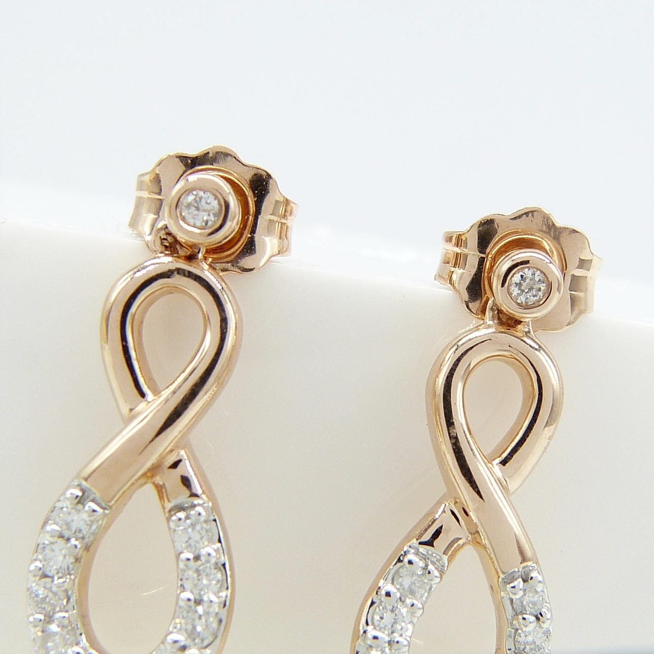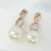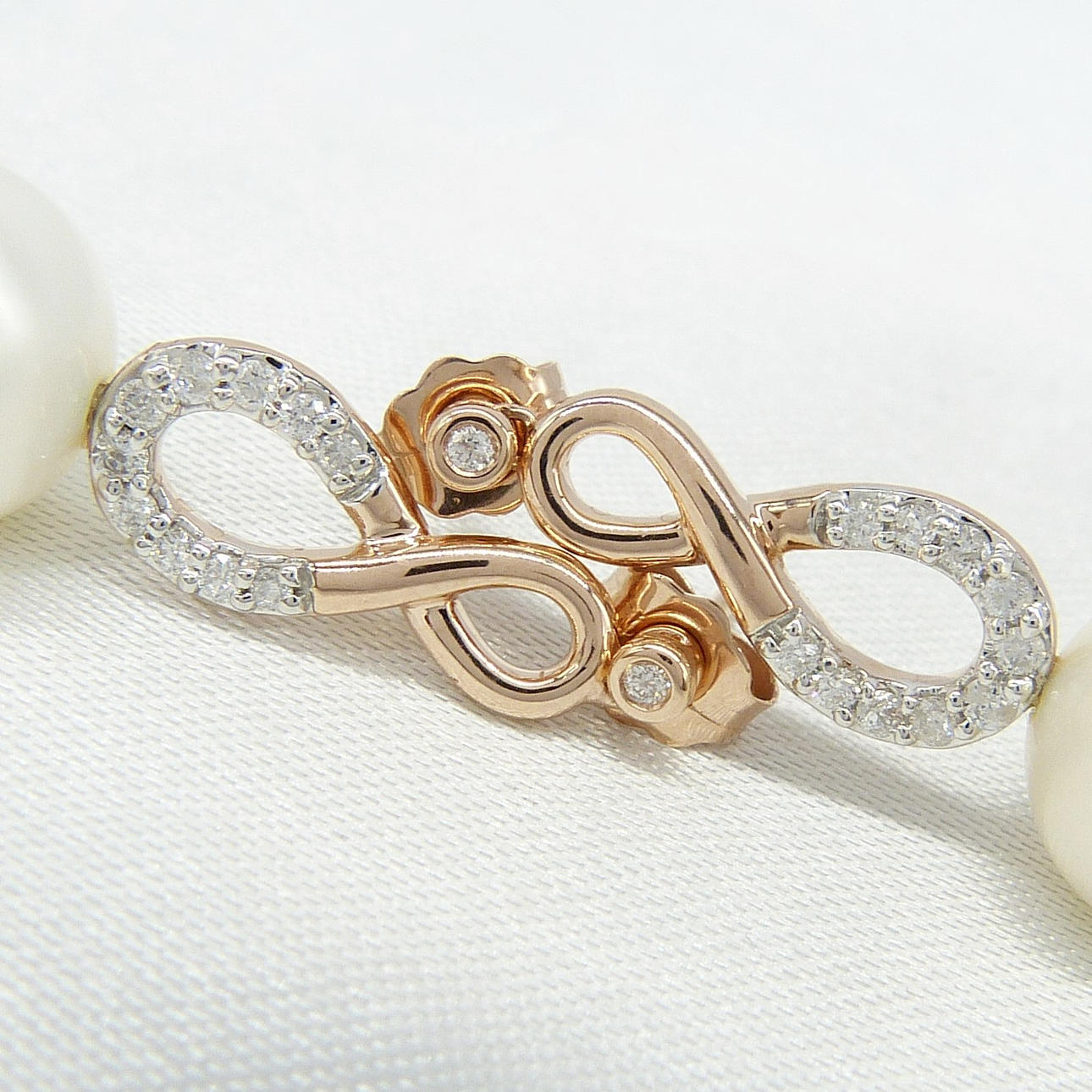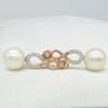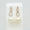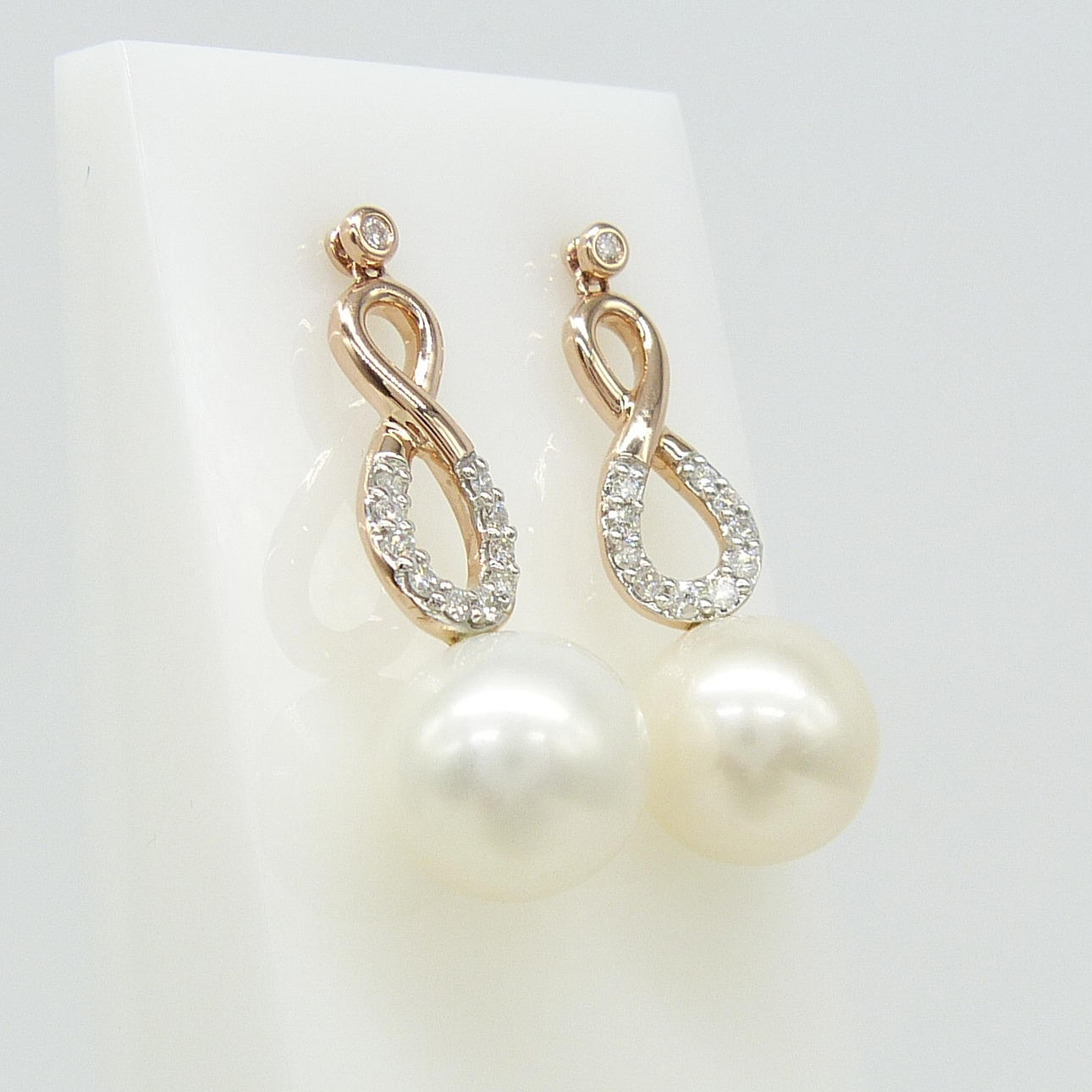 Tyylikäs ruusukulta-korvakorupari, jossa on valkoisia viljeltyjä helmiä ja 0,20 karaatin timantteja, perhosselkä.