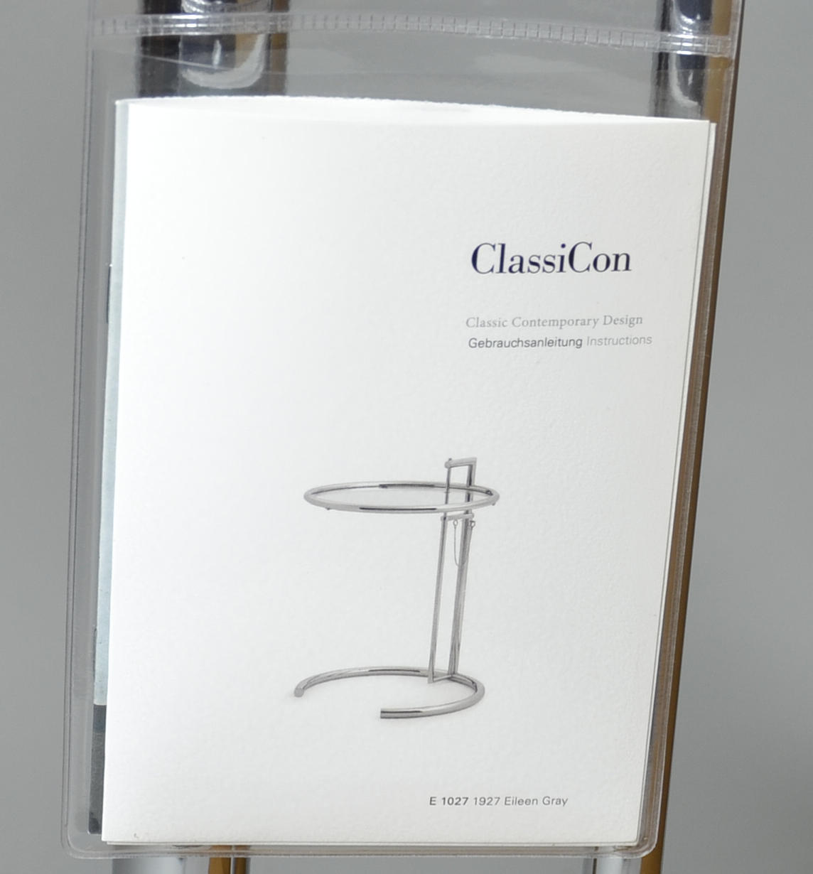 Suunnittelu Eileen Grey 1927 Valmistaja Classicon Kromattu jalka metallirunko, kristallilasikansi.