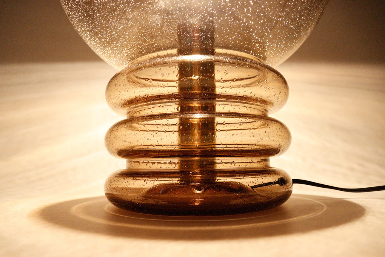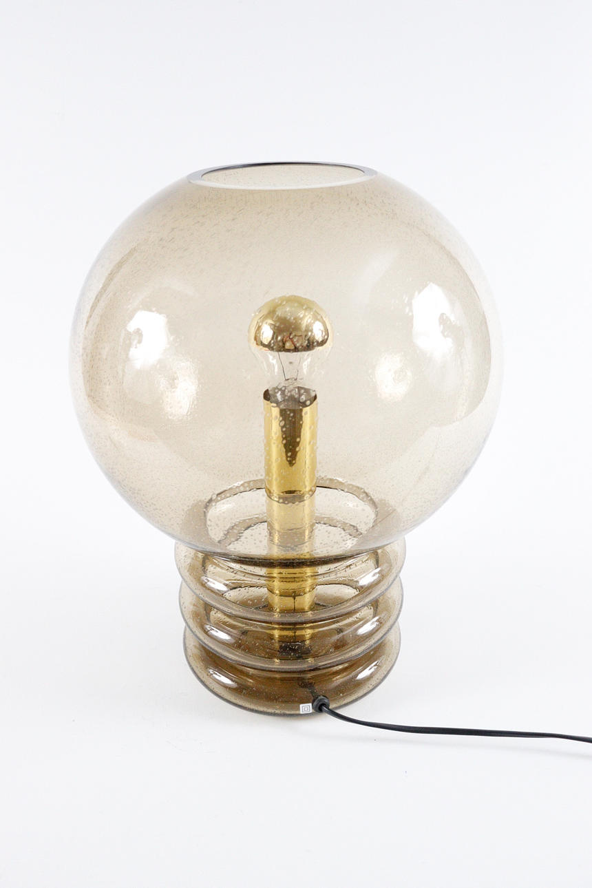 Glashütte Limburgin pöytävalaisin, 1970-luku, käsinpuhalletusta savulasista, saatavana yksi valaisin, mitat n.: K. 46cm, Ø. 36 cm.
