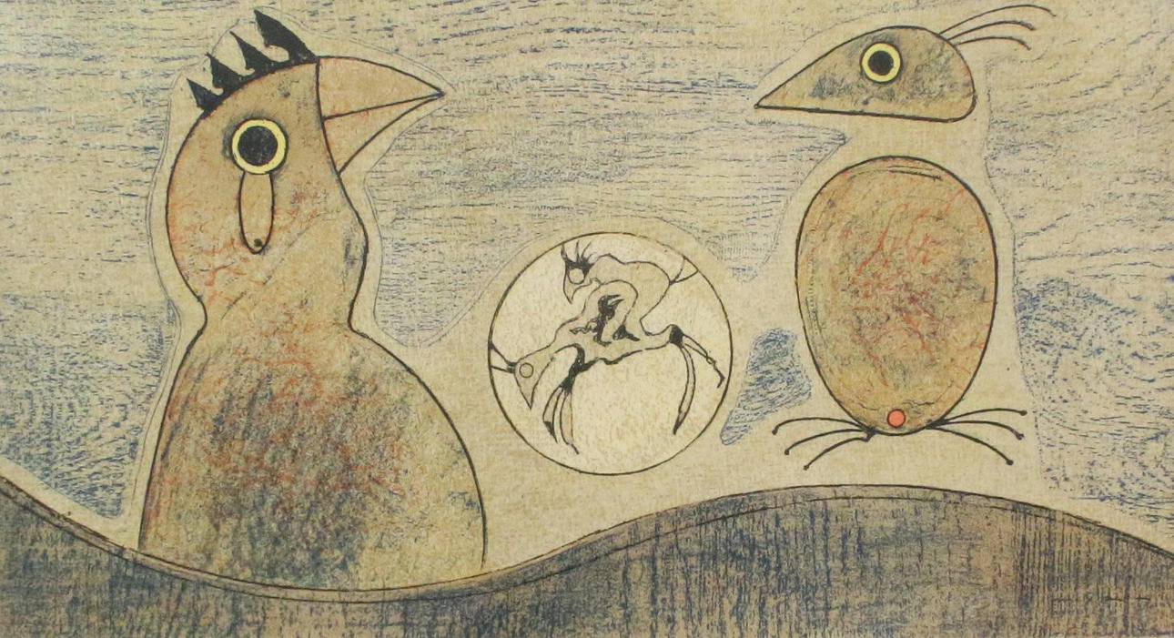 MAX ERNST (bk). 'Deux Oiseaux', värillinen litografia.