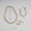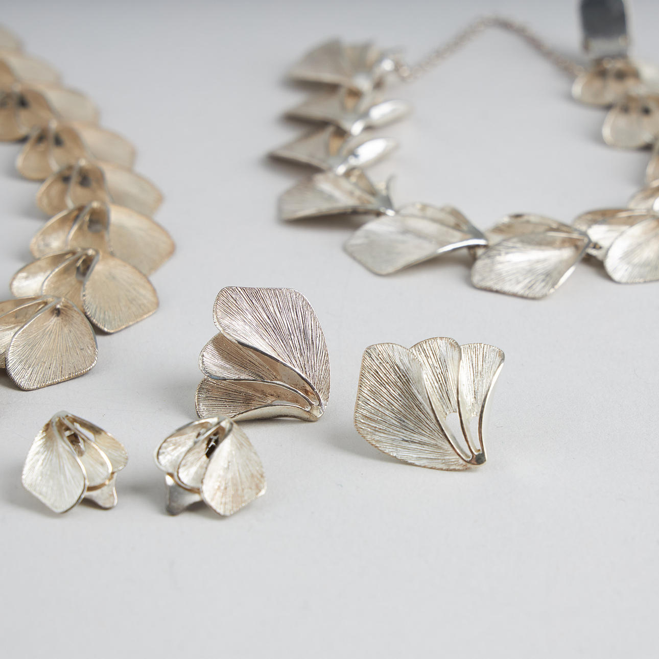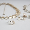 Kaulakoru 42 cm, rannekoru 19 cm, säädettävä sormus, korvakorut 16 ja 23 mm.