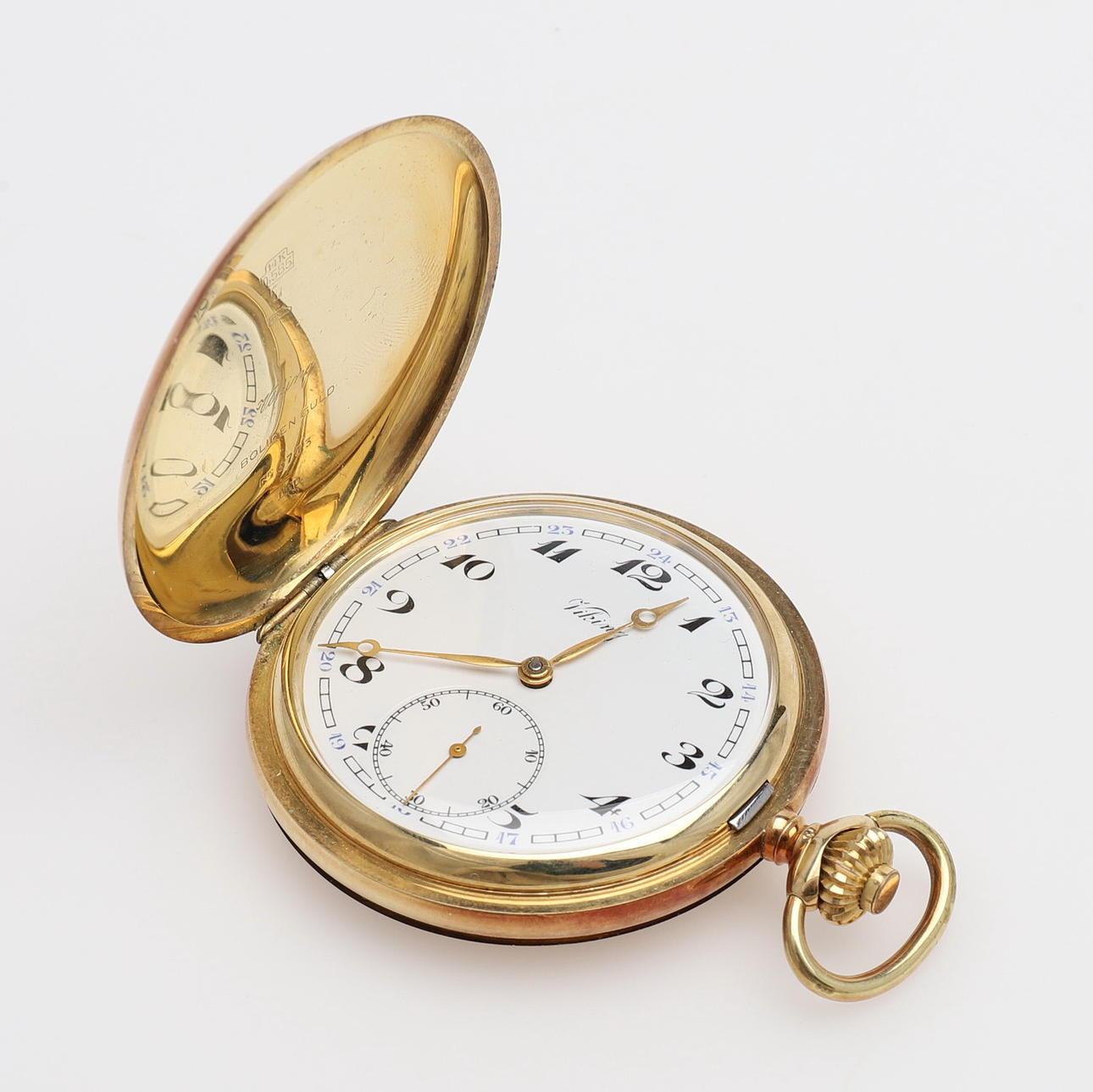 14k kultaa, savonette, mission kruunulla, kaliiperi 527, arvoton sisäkansi, halkaisija 51 mm, paino 84,8 grammaa, kotelo.