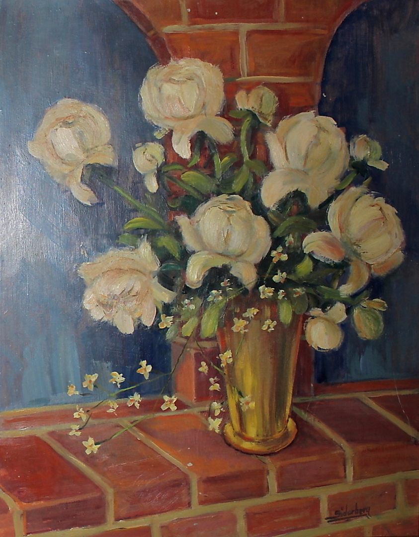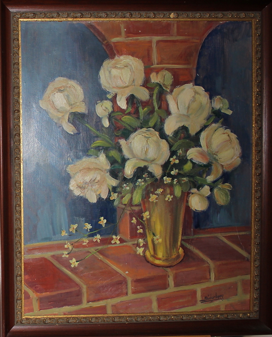 249162. ELISABETH SÖDERBERG. öljy Paneeli, kukka-asetelma, signeerattu Söderberg.