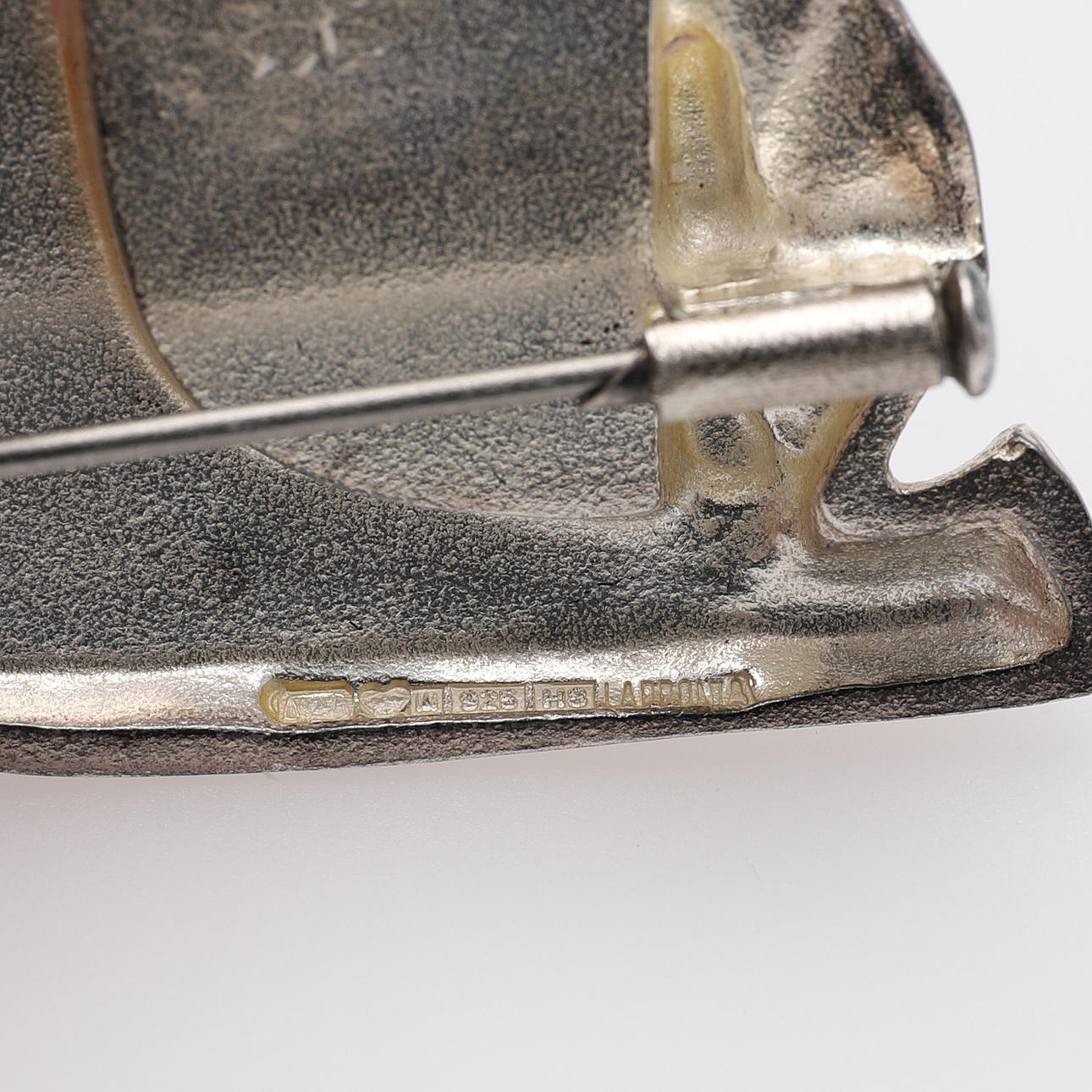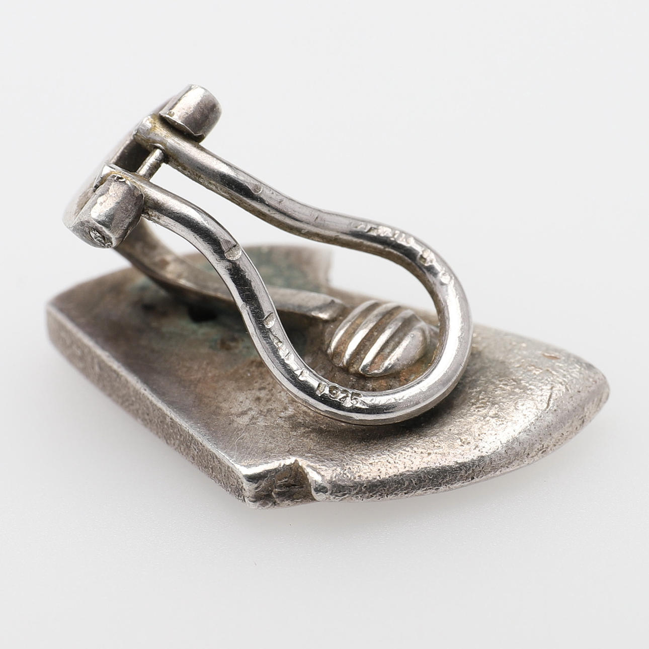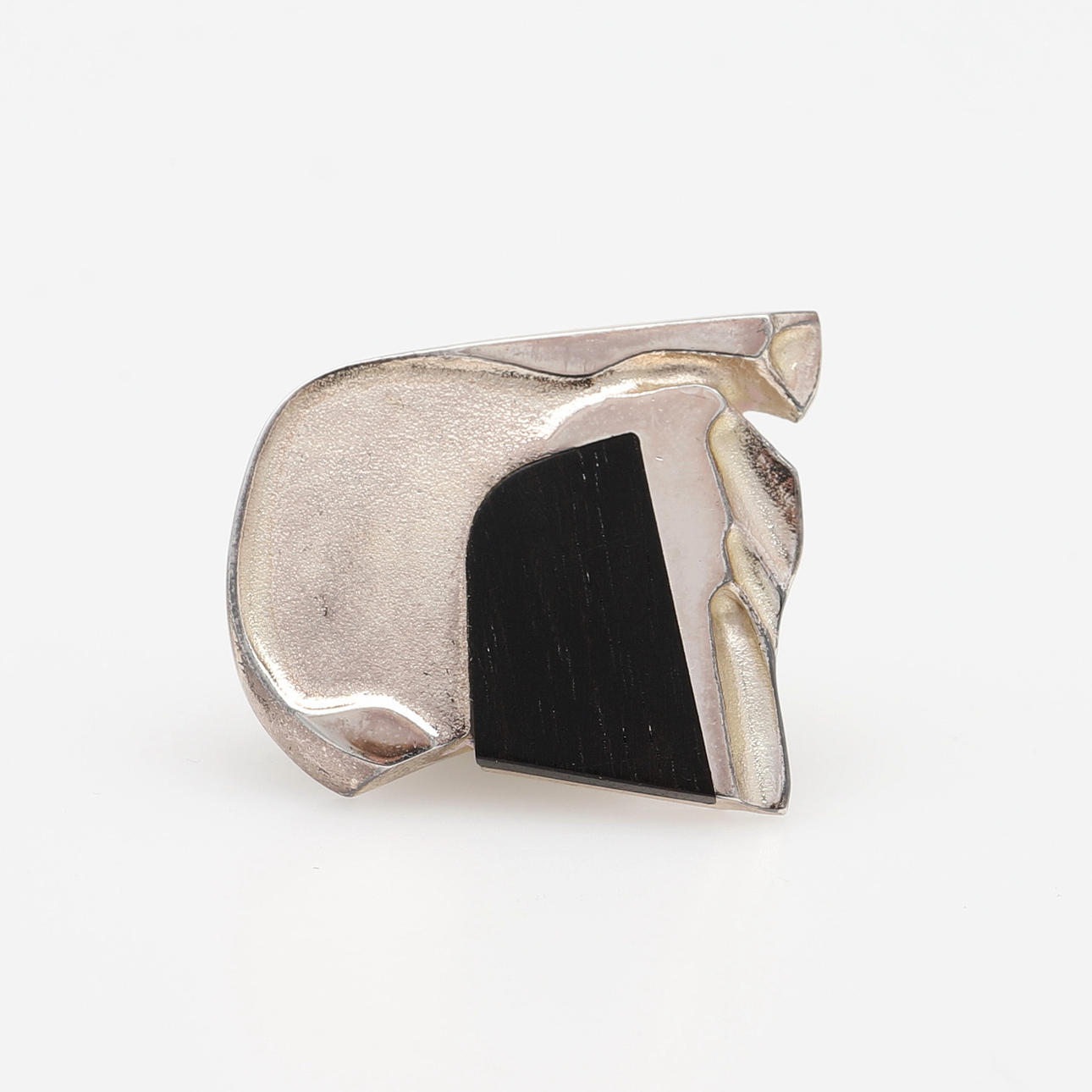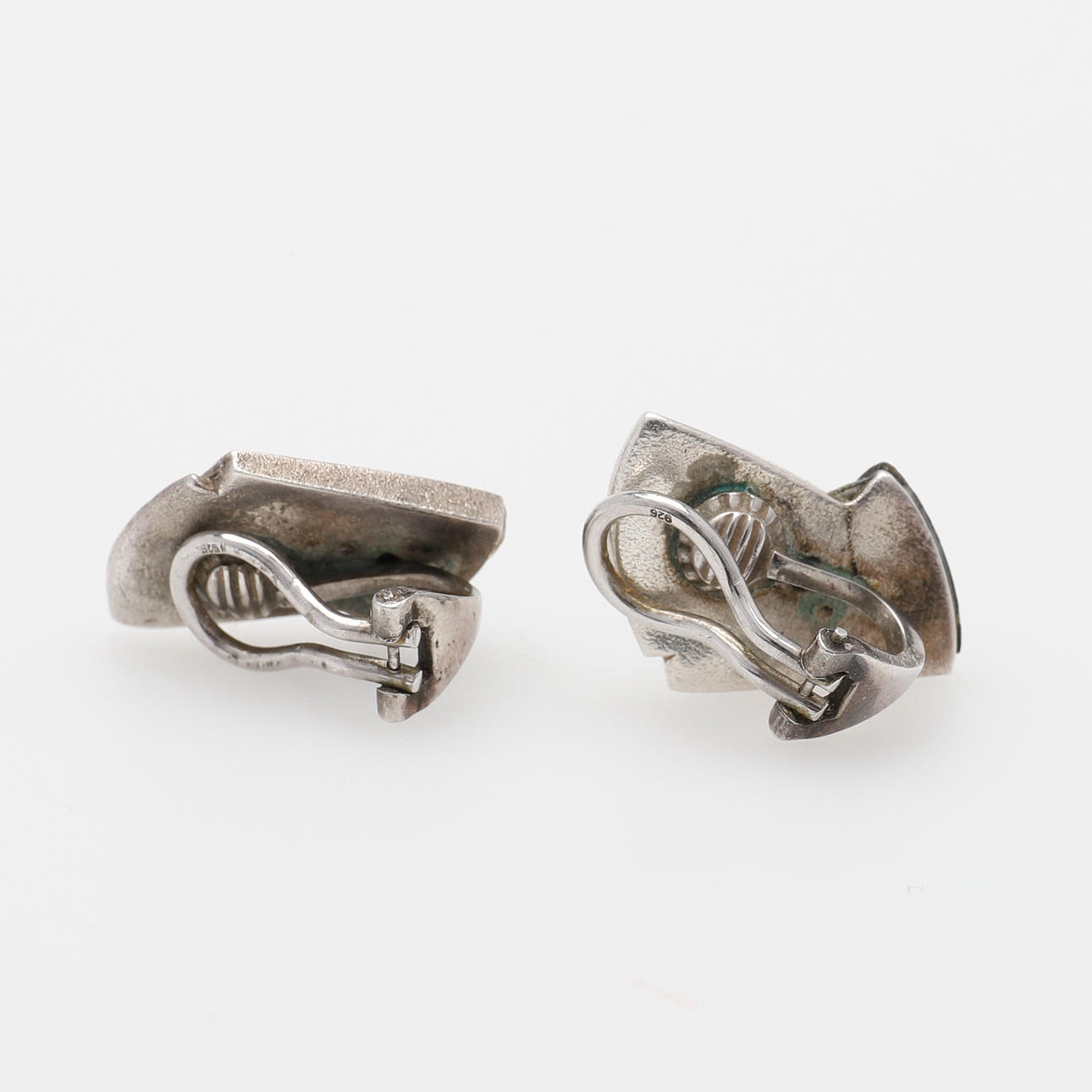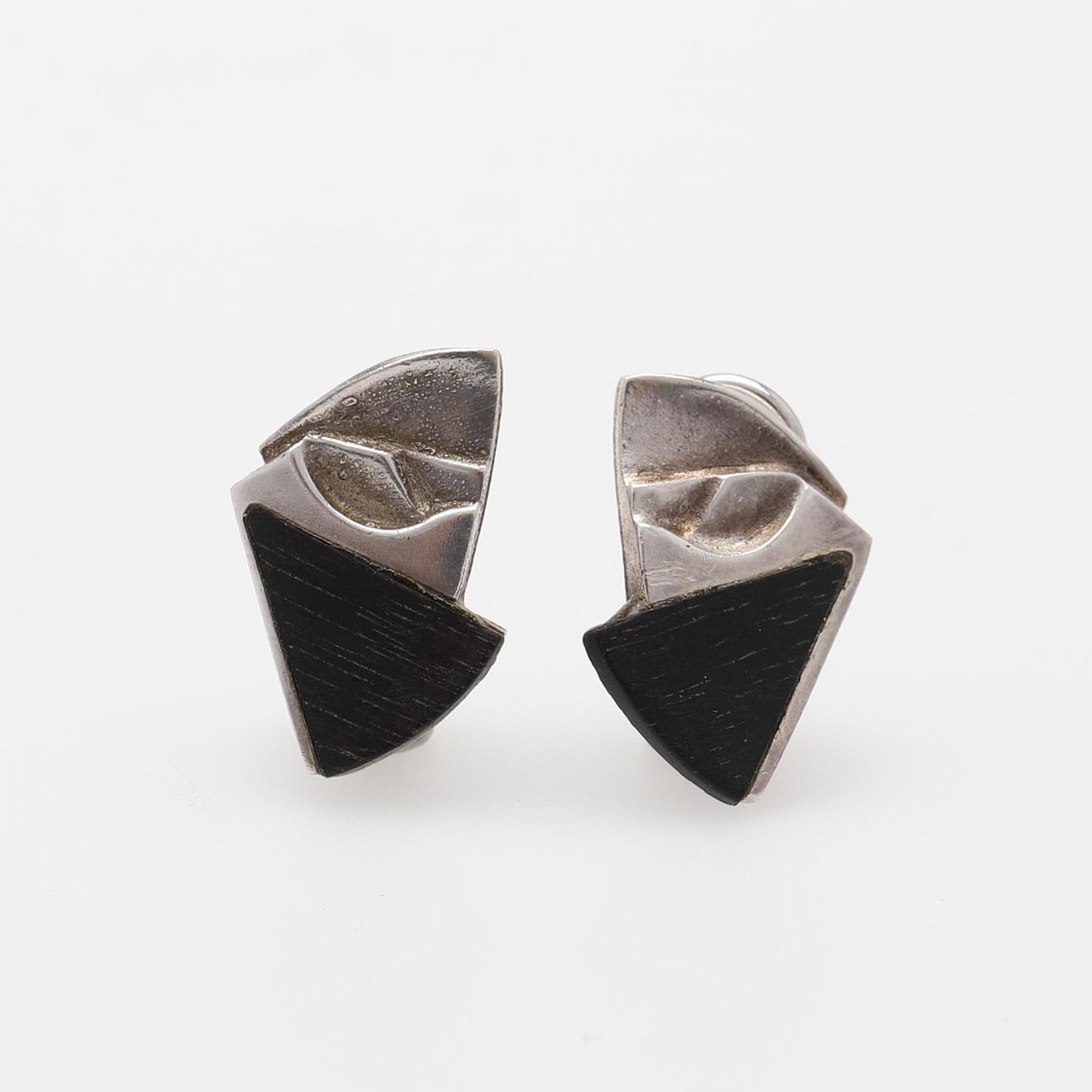 Sterling hopeaa ja eebenpuuta, Suomen postimerkeillä 1984, pituus 32 mm ja korvaklipsit, hopeaa ja eebenpuuta, ei postimerkkejä, pituus 22 mm.