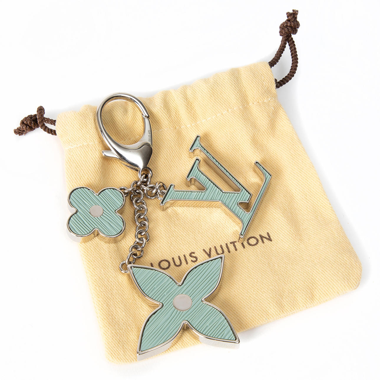 Laukkukoru kolmella riippukorulla. Merkitty "LOUIS VUITTON PARIS MADE IN ITALY". Pölypussi. Noin 14 cm.