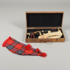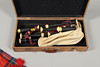 Säkkipillit puisessa kantolaukussa. Kotelon mitat: Korkeus 31 x pituus 64 cm x syvyys 12 cm.