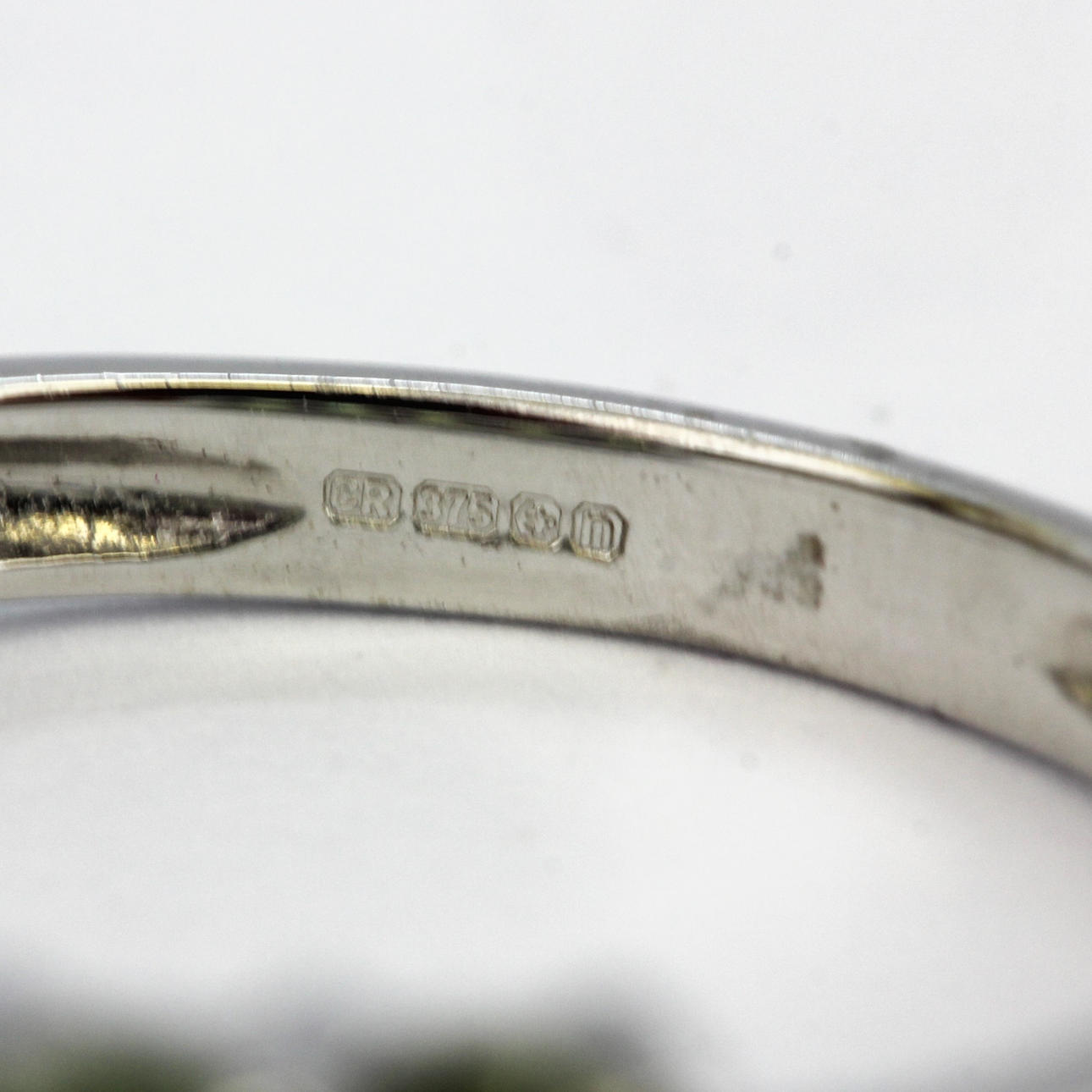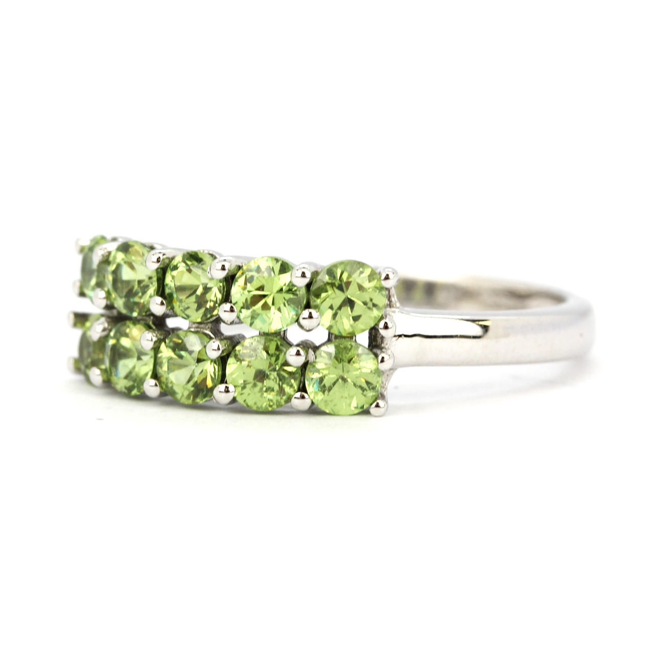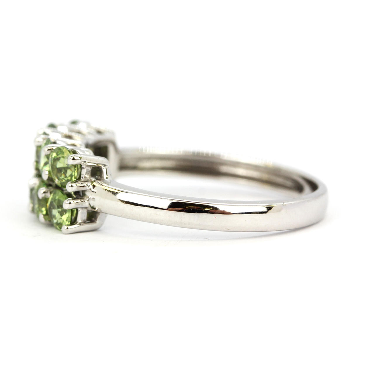 9 ct valkokultainen sormussetti kahdella rivillä peridotteja, sormuskoko N.5.