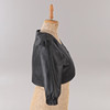 Bolero ommeltuilla laskoksilla hihansuissa, selässä ja olkapäissä Selän pituus 38 cm, koko L.