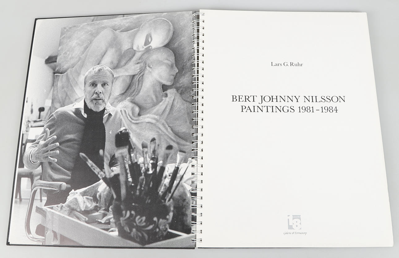 Lars G. Ruhr, Bert Johnny Nilsson Paintings 1981 - 1984, Galerie 18, Tormestorp Bibliofiilipainos 150 kopiota, josta tämä on numero 150. Bibliofiilipainoksen kolme mukana olevaa litografiaa puuttuu.