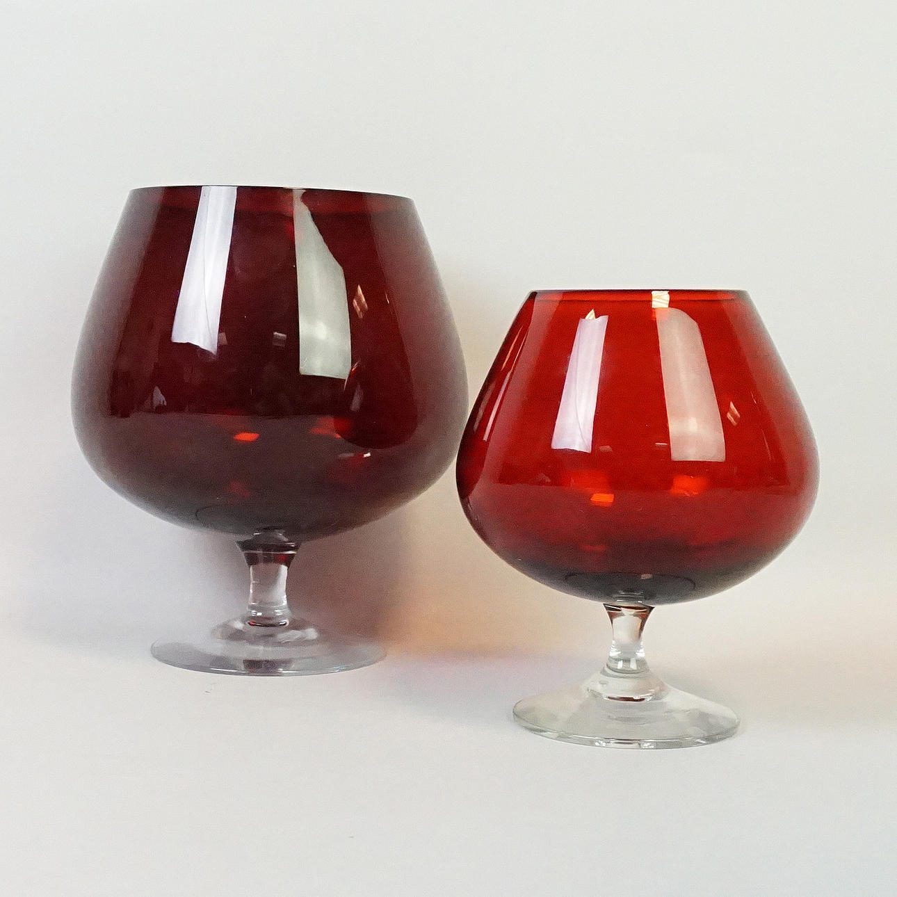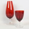 Punainen kuppi läpinäkyvällä jalalla Korkeus 15-29 cm.