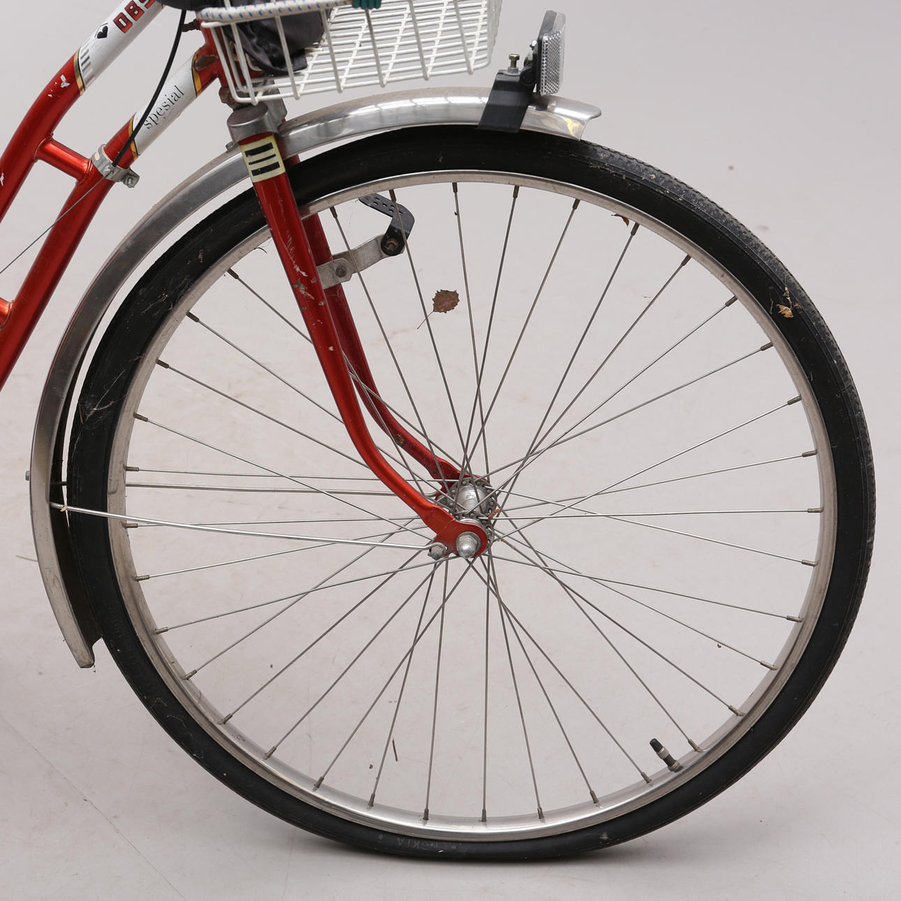 Käyttökuluma, likaa. Renkaat tyhjät, poljin rikki, kahvassa halkeama. Ei toiminnallisesti testattu.