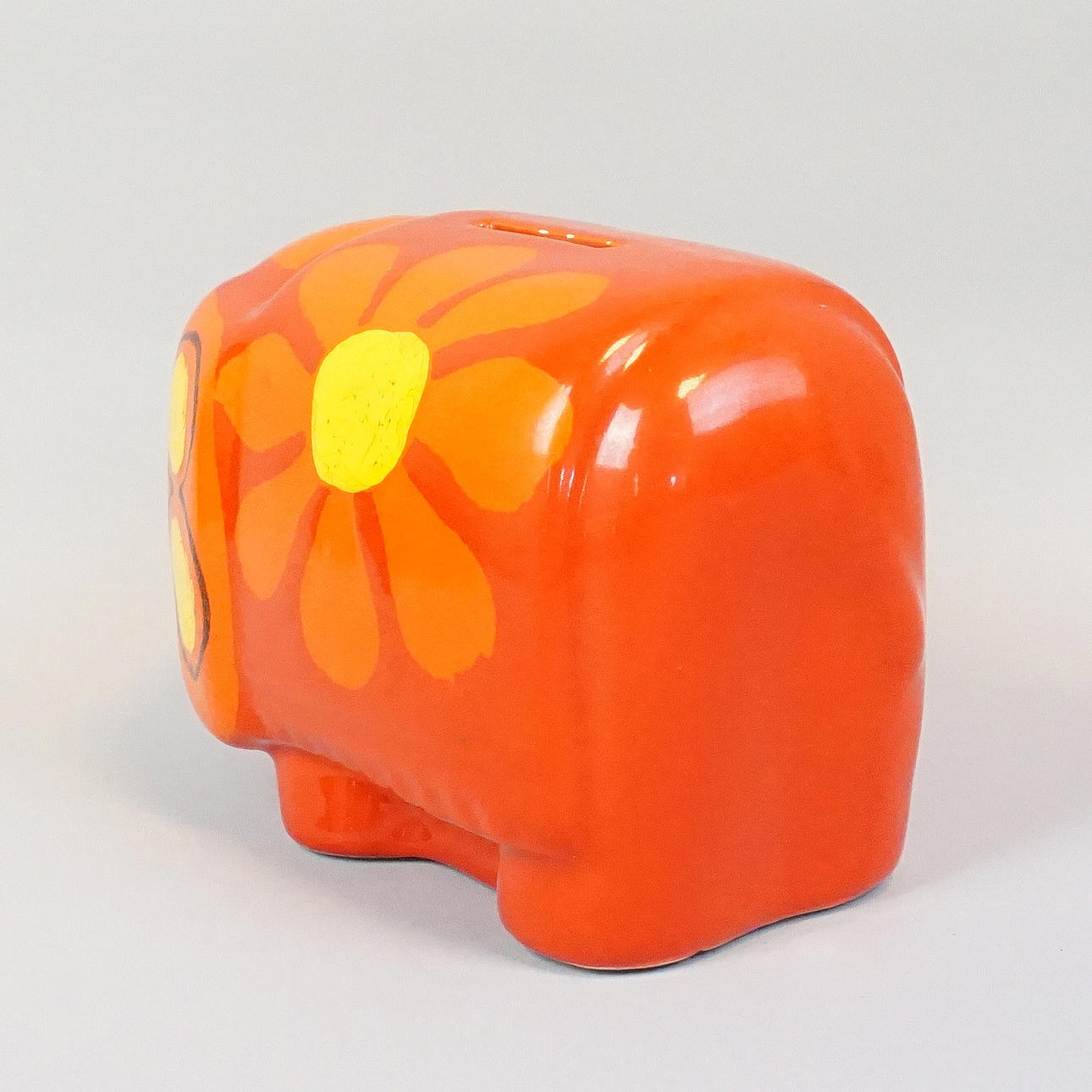 Punainen elefantti koristeltu kukka. Pituus n. 19,5 cm, korkeus n. 13 cm.