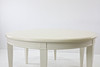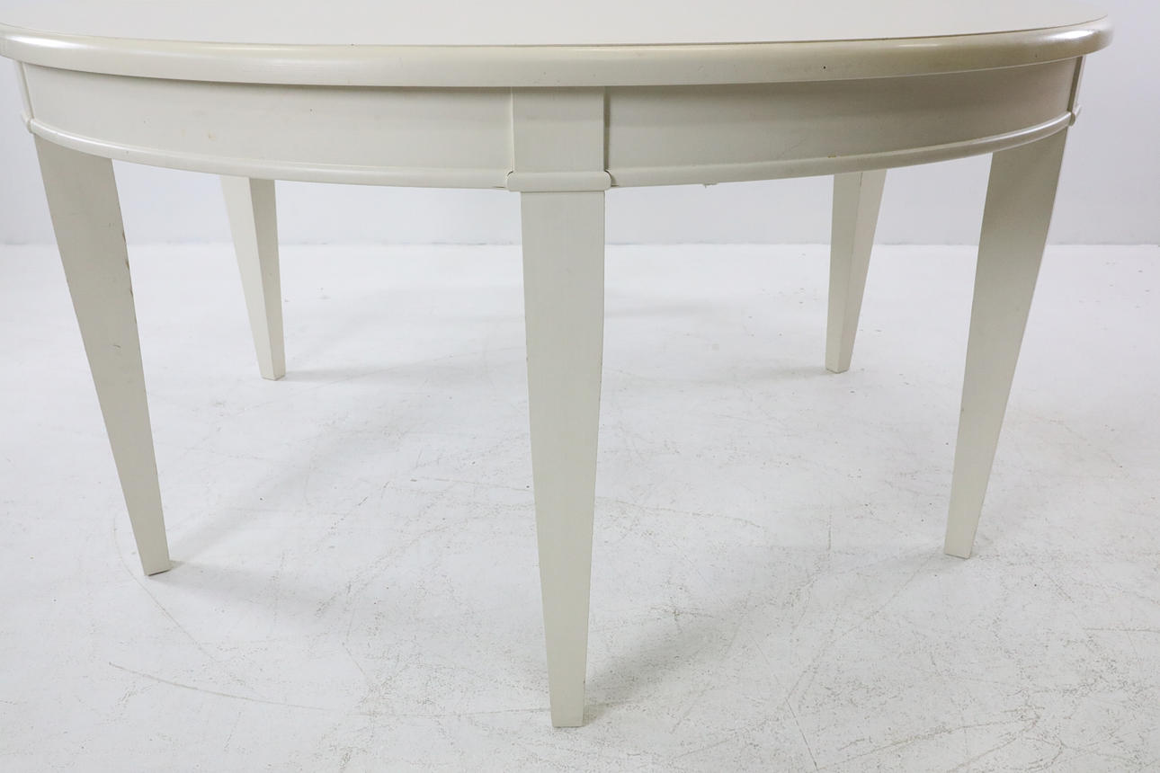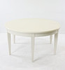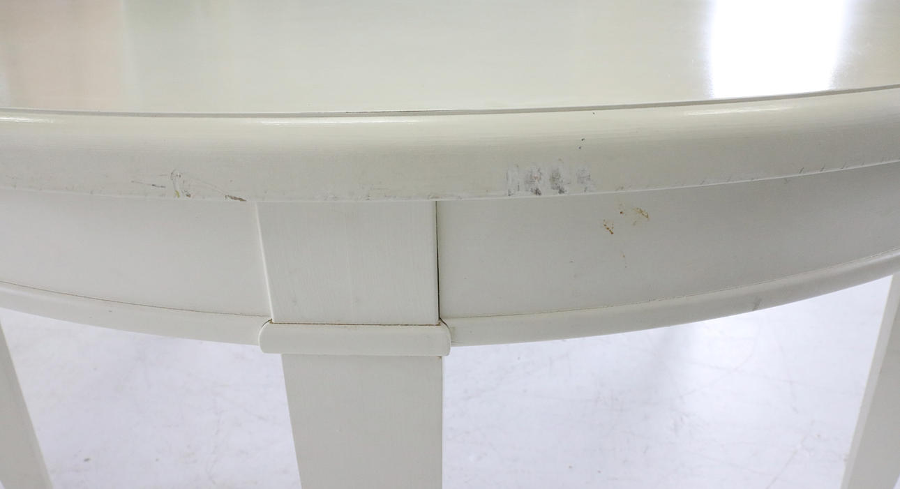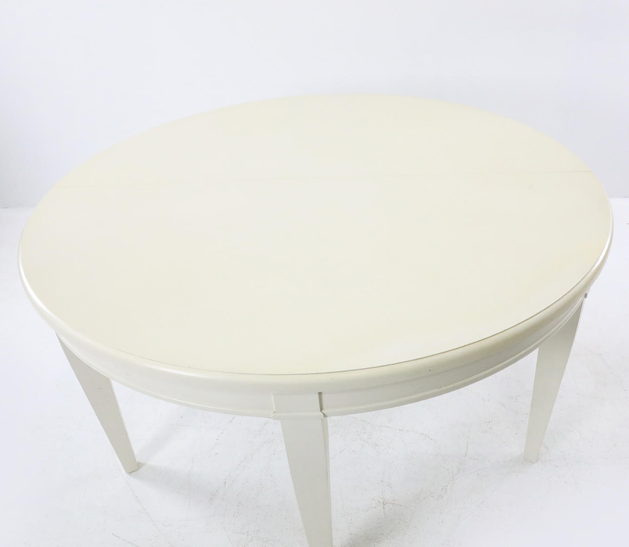 Valkoinen käsinlasitettu koivu, 6 irrotettavaa jalkaa. Halkaisija 150 cm Korkeus 75 cm.