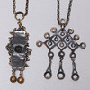 178 grammaa. Pentti Sarpaneva, ketjun pituus, n. 72 cm, riipus, n. 3 x 3 cm. Riipus, Mustad, pituus n. 8,5 cm, leveys n. 6 cm.