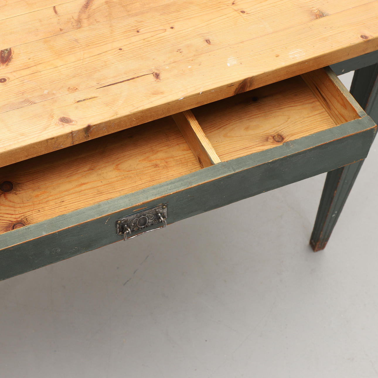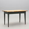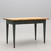 Mänty, osittain maalattu sinivihreäksi. Laatikko helmassa. pituus 117, leveys 68, korkeus 76 cm.