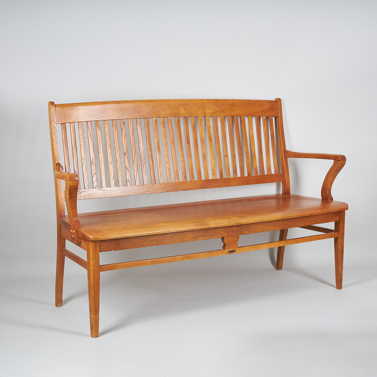Leveys 159 cm, syvyys 55 cm, istuinkorkeus 45 cm, kokonaiskorkeus 100 cm, Billnäs metallilaatta.