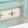 Vihreäksi lakatusta puusta valmistettu peili-ikkuna, jossa on syvennykset, kaksi taitto-ovea ja niiden takana ikkuna, 91x79,5cm.