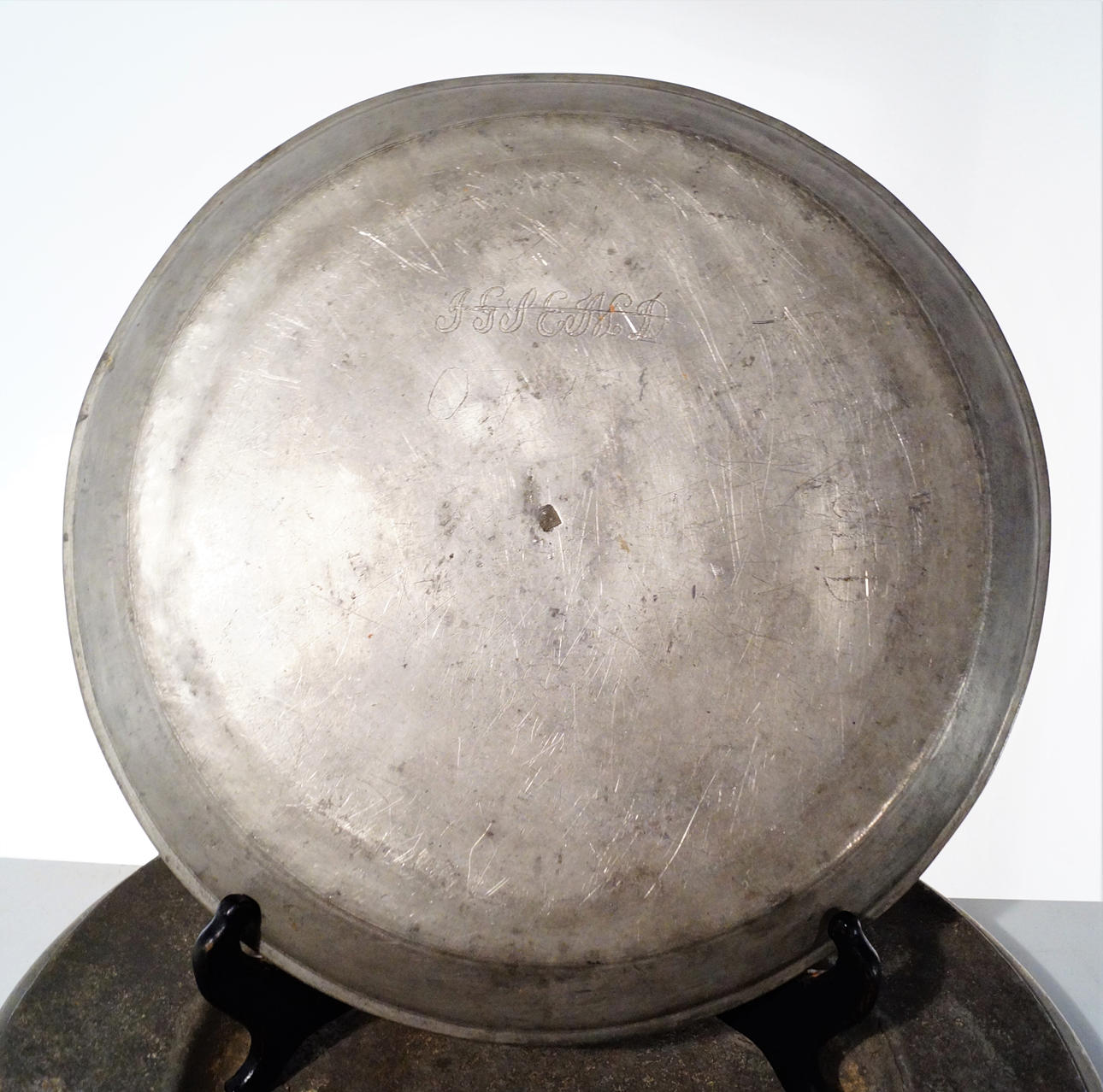 Kolme vanhempaa tina-astiaa, halkaisija 39, 38 ja 34,5 cm.