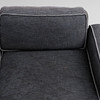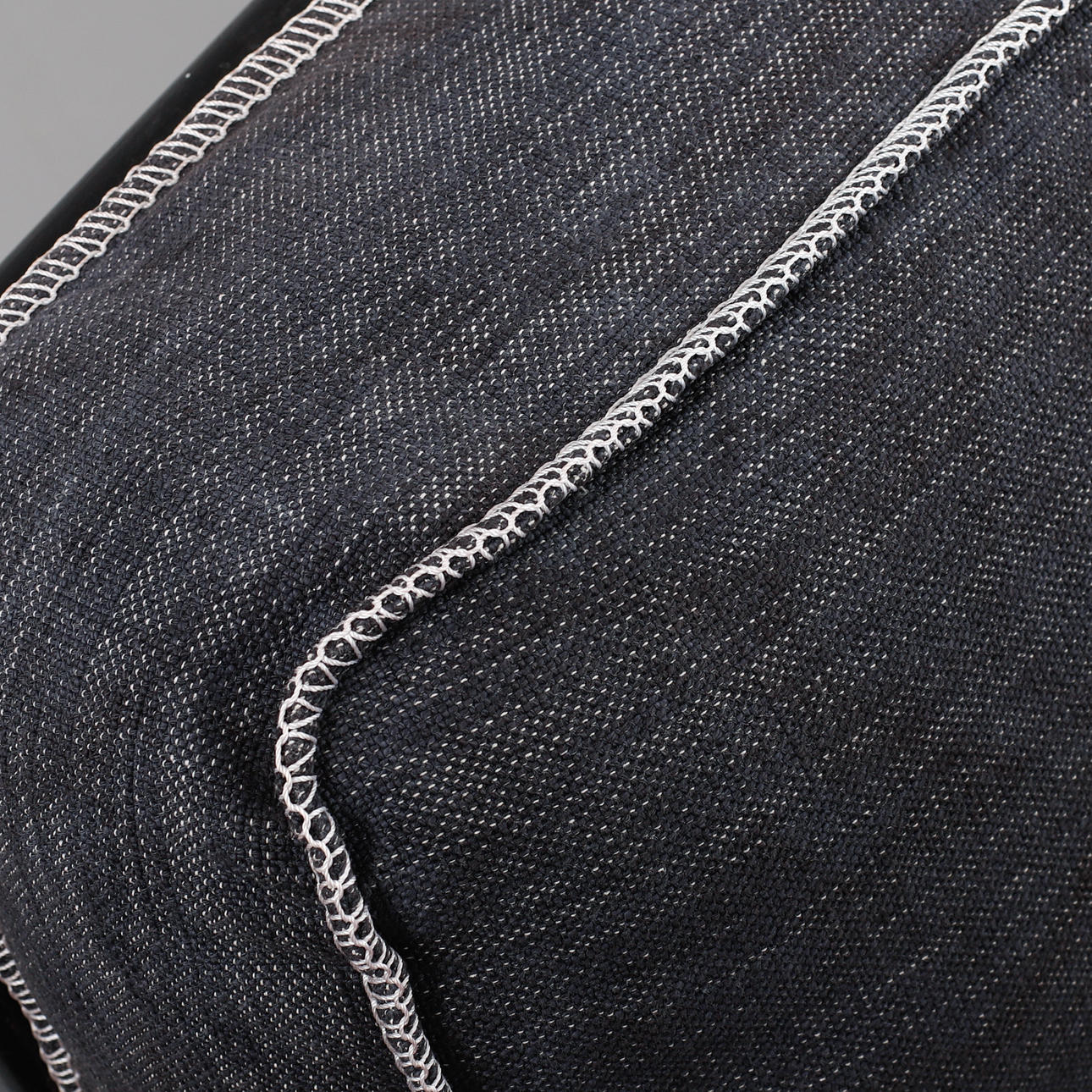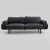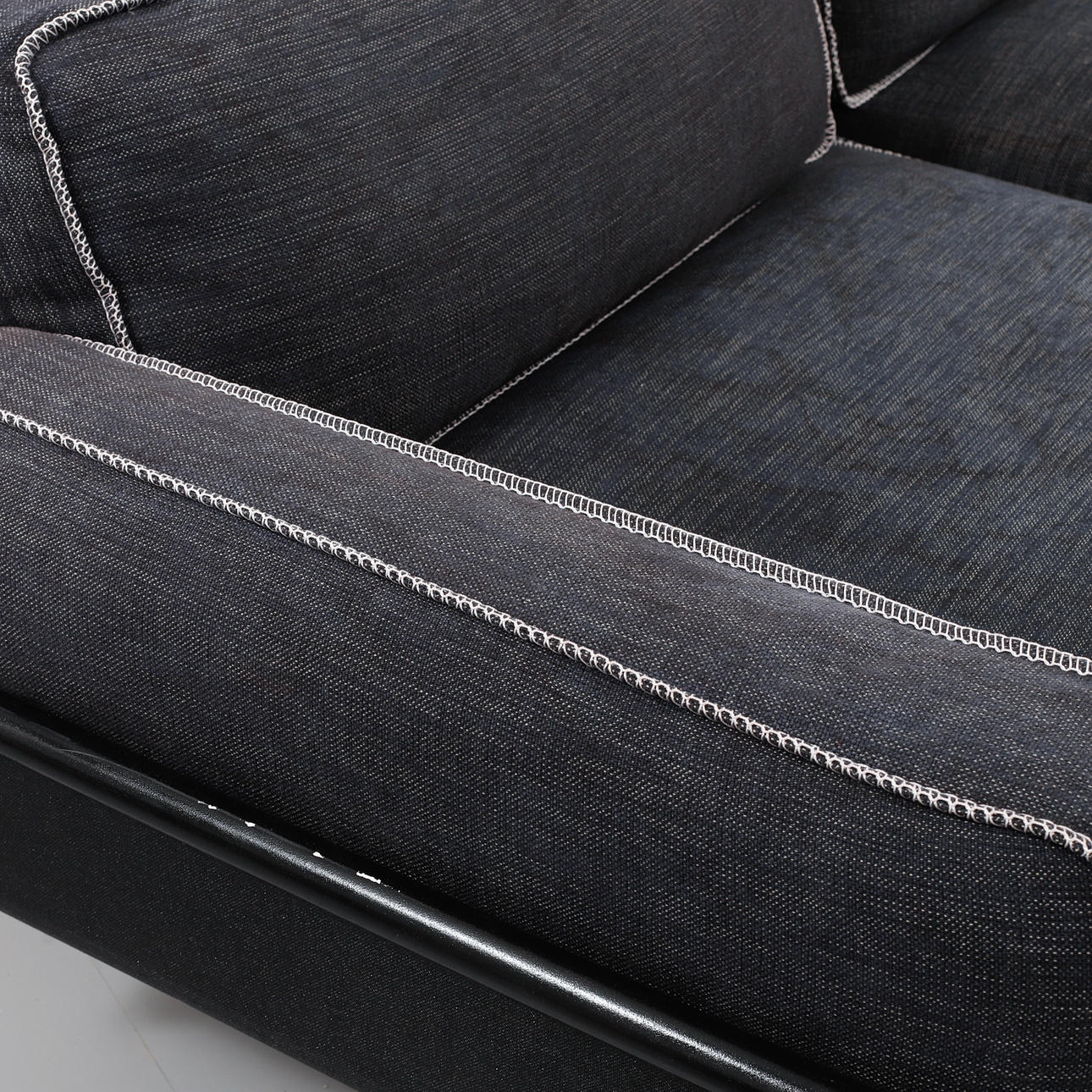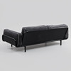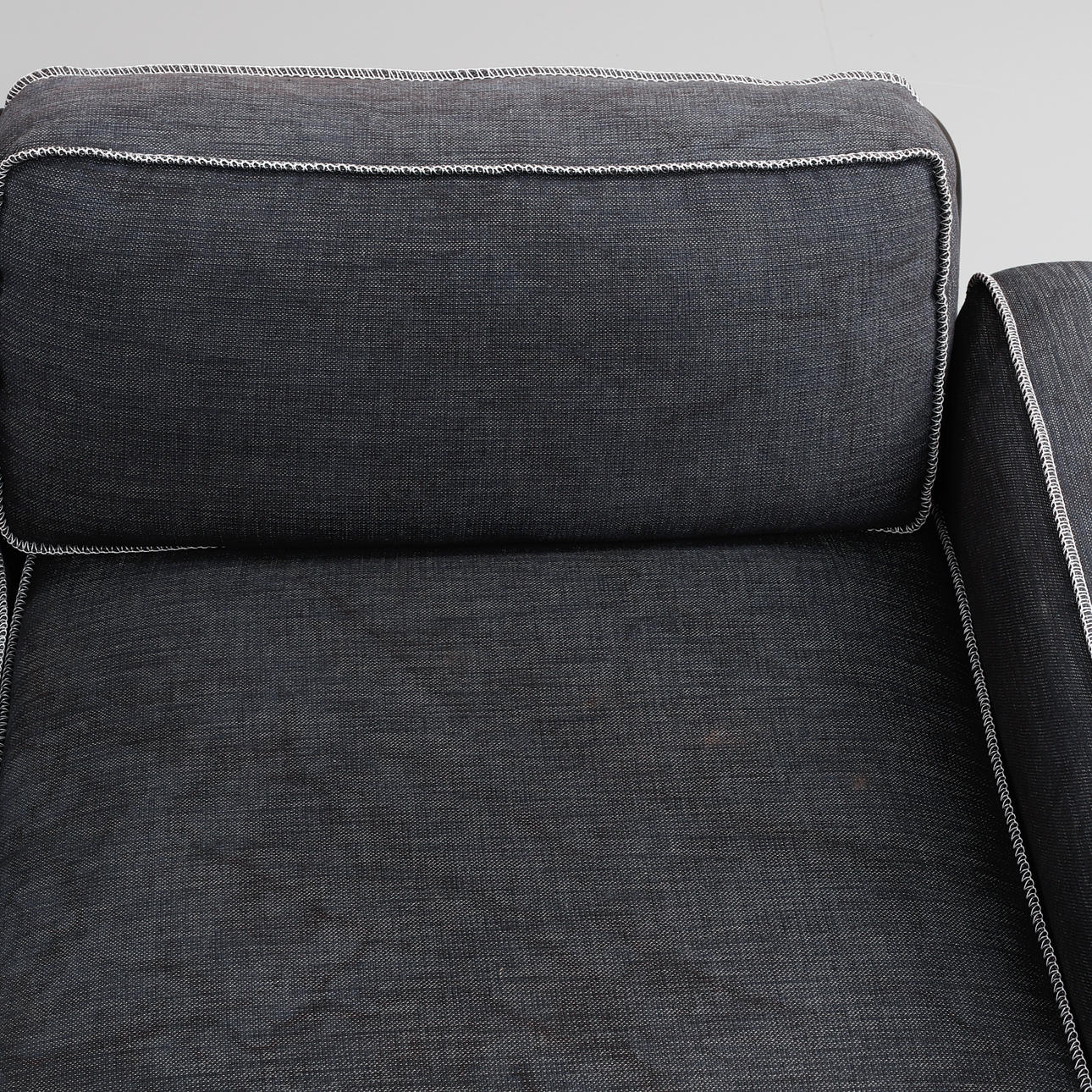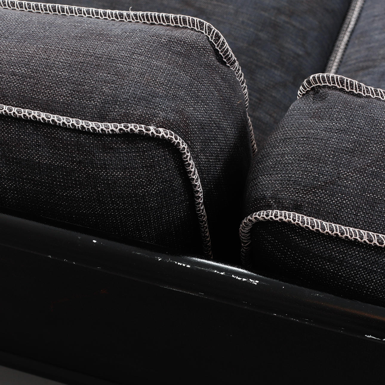 Mustaksi lakattu metallirunko, löysät höyhenet. Pituus n. 220 cm, syvyys n. 105, istuinkorkeus n. 43 cm.