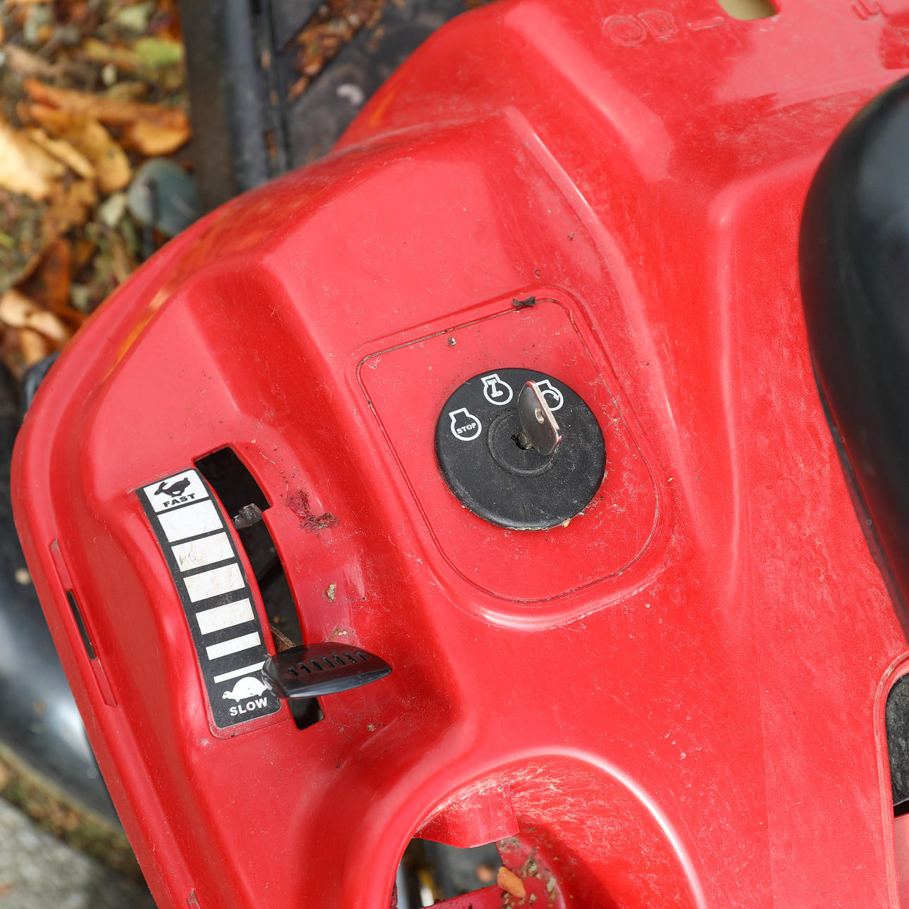 Ajettava ruohonleikkuri merkiltä MTD Kokonaiskorkeus n. 110 cm Kokonaisleveys n. 80 cm Kokonaispituus n. 160 cm.