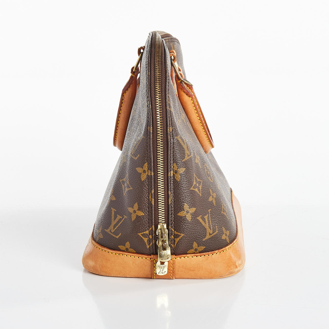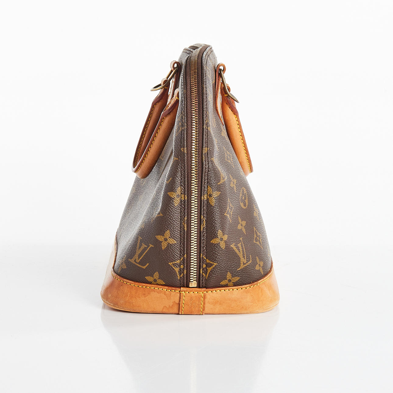 Vuorattu käsilaukku monogrammikankaasta ja nahkayksityiskohtia. Yläkahva, kaksinkertainen vetoketju. Sisätasku. Lukko kahdella avaimella. Merkitty VI0946, "LOUIS VUITTON PARIS made in France" ja päivämääräkoodi (vuosi 1993).