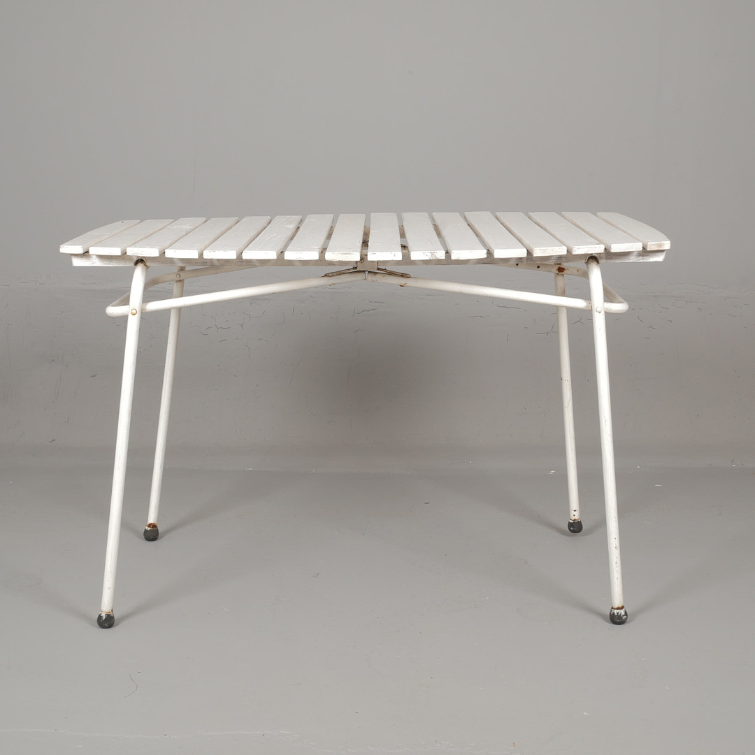 2775666. TAITTUVA PUUTARHAPÖYTÄ, tuoliputki ja puuta, 1900-luvun puoliväli.