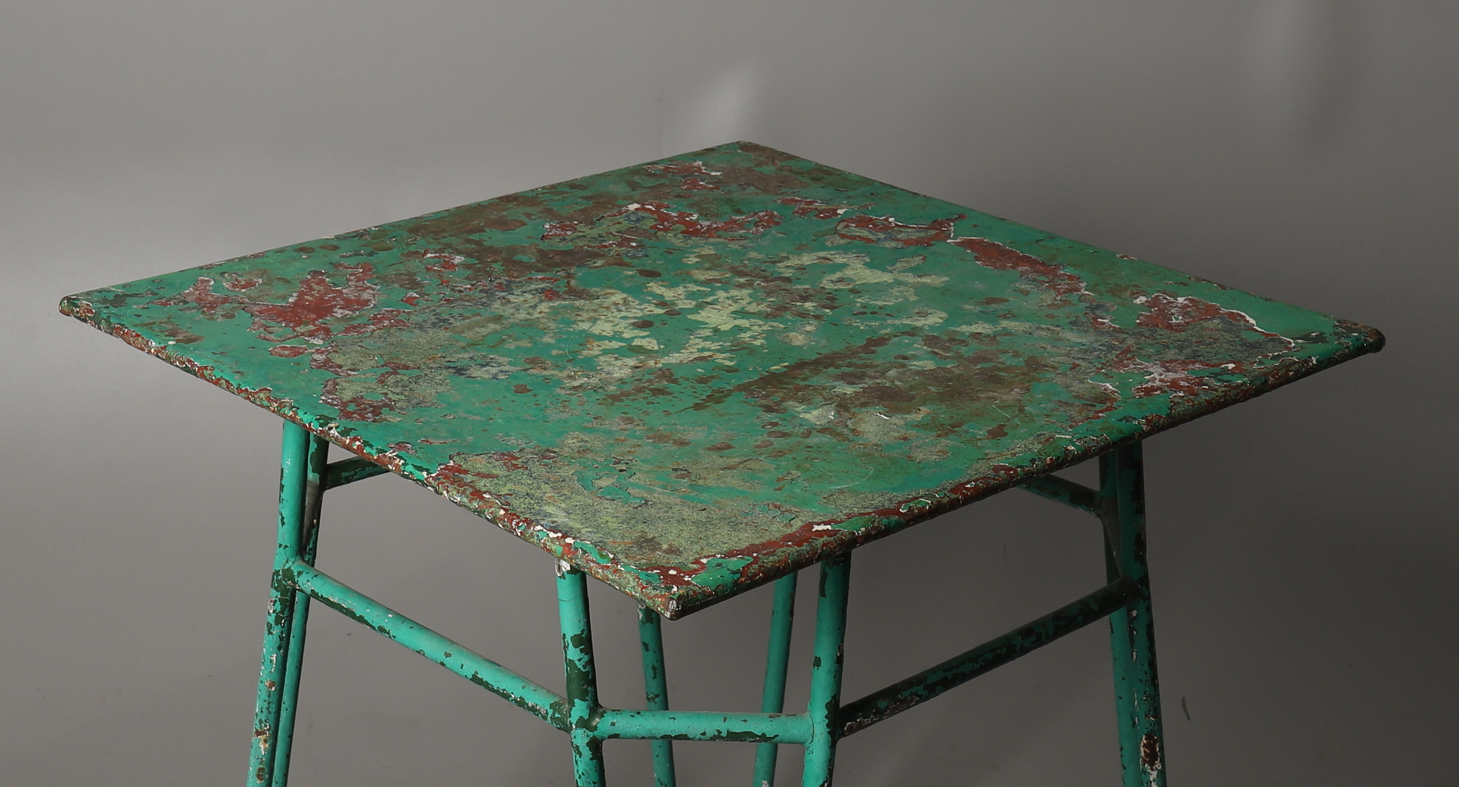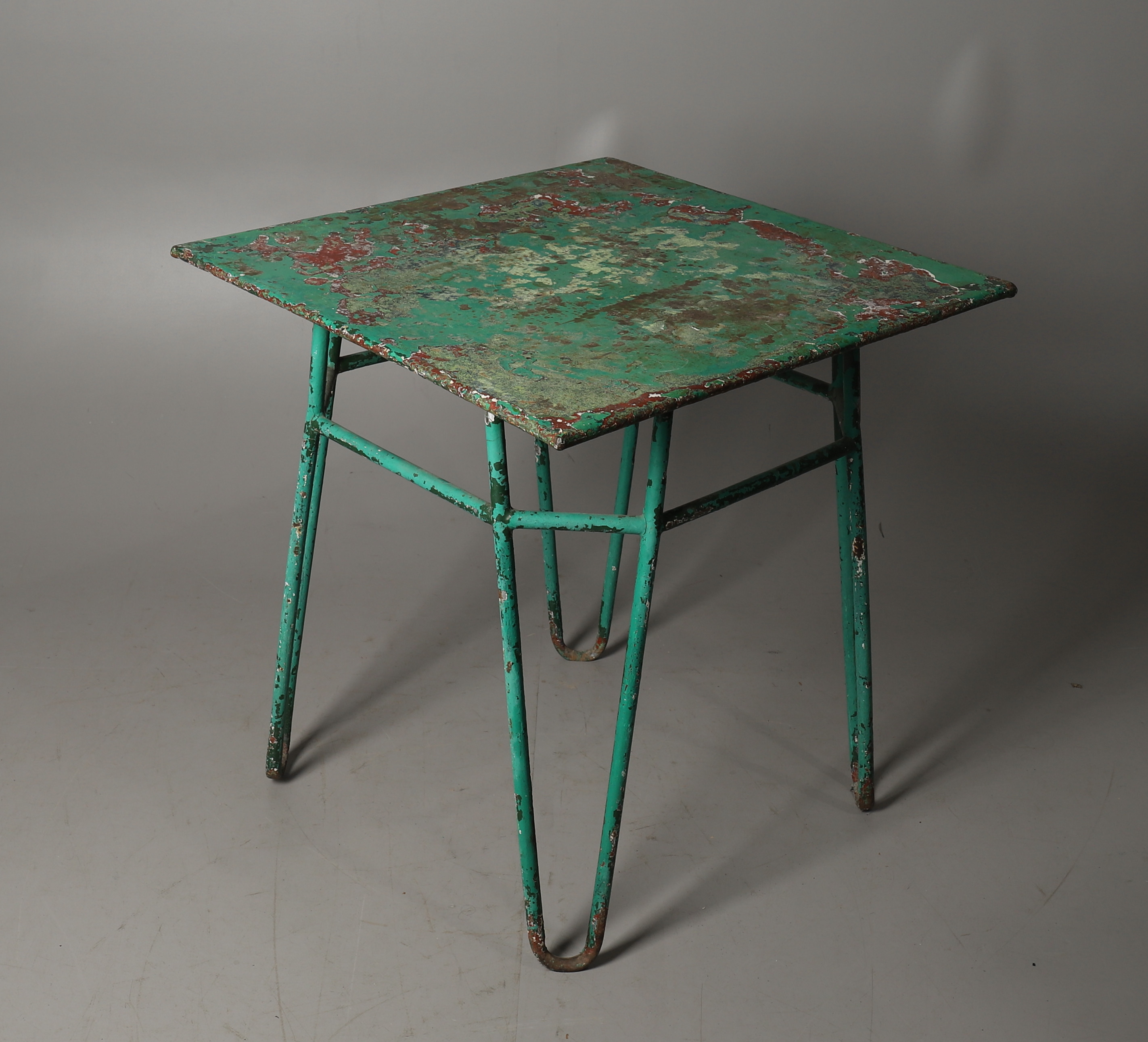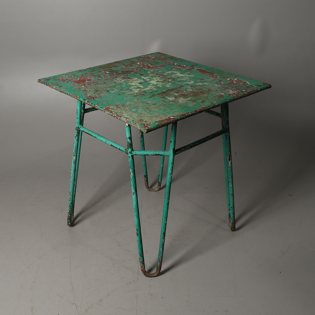 2785111. VIHREÄHEKSI MAALATU METALLINEN PUUTARHAPÖYTÄ.