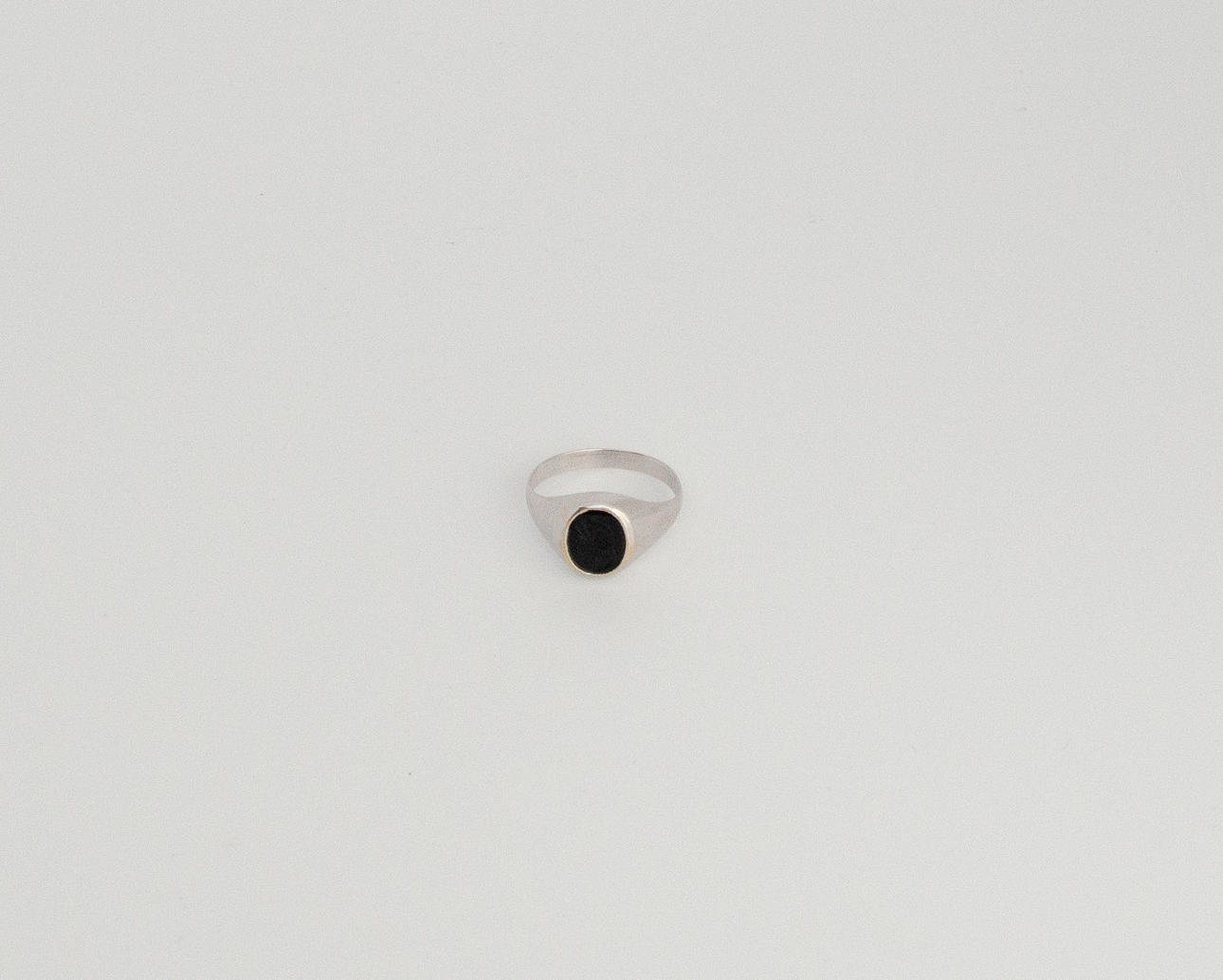 Sinettisormus 14K VALKOKULLAA INTAGLIOLLA.