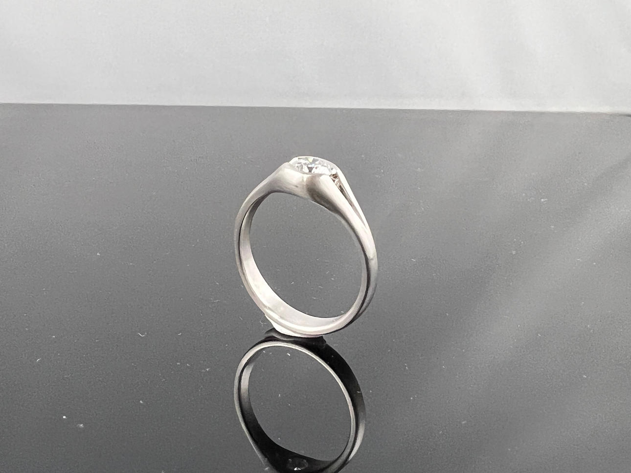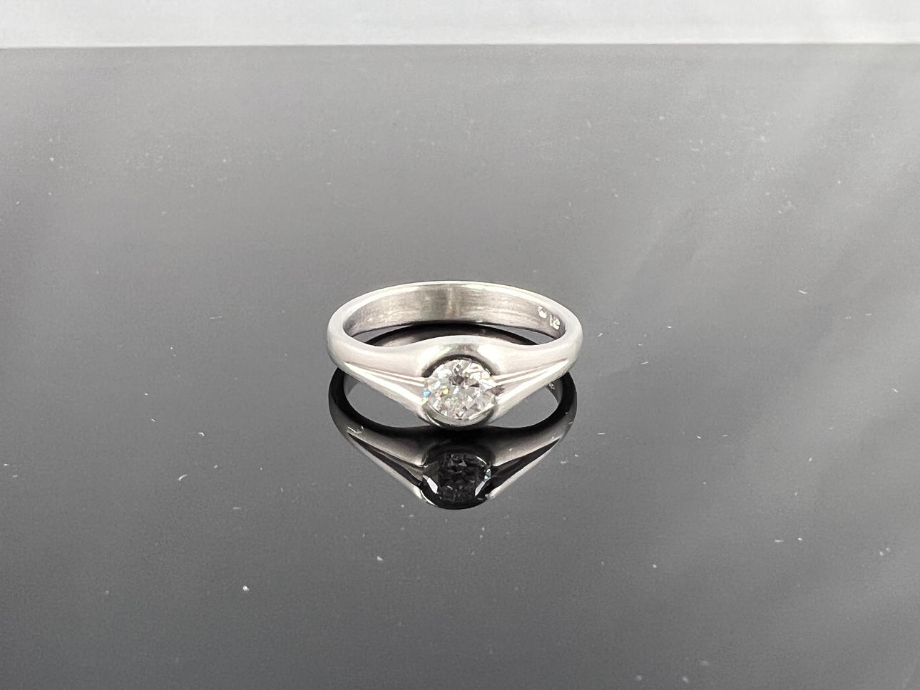 Tyyppi: Sormus Materiaali: 950/000 Kivipinta: 1 briljanttihiottu timantti n. 0,5 ct toppi Wesselton, vvs Sormuksen koko: 57 / 18 Paino: 7,1 g.