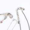 Kaulakoru kiillotetuilla vaaleanpunaisilla kivillä, pituus 42,5 cm Kaulakoru valkoisella kiillotetulla kivillä, pituus 39-46 cm Hopeakaulakoru, riipus valkoista metallia kiillotetulla kivellä, pituus 46 cm, riipuksen korkeus 3,4 cm.