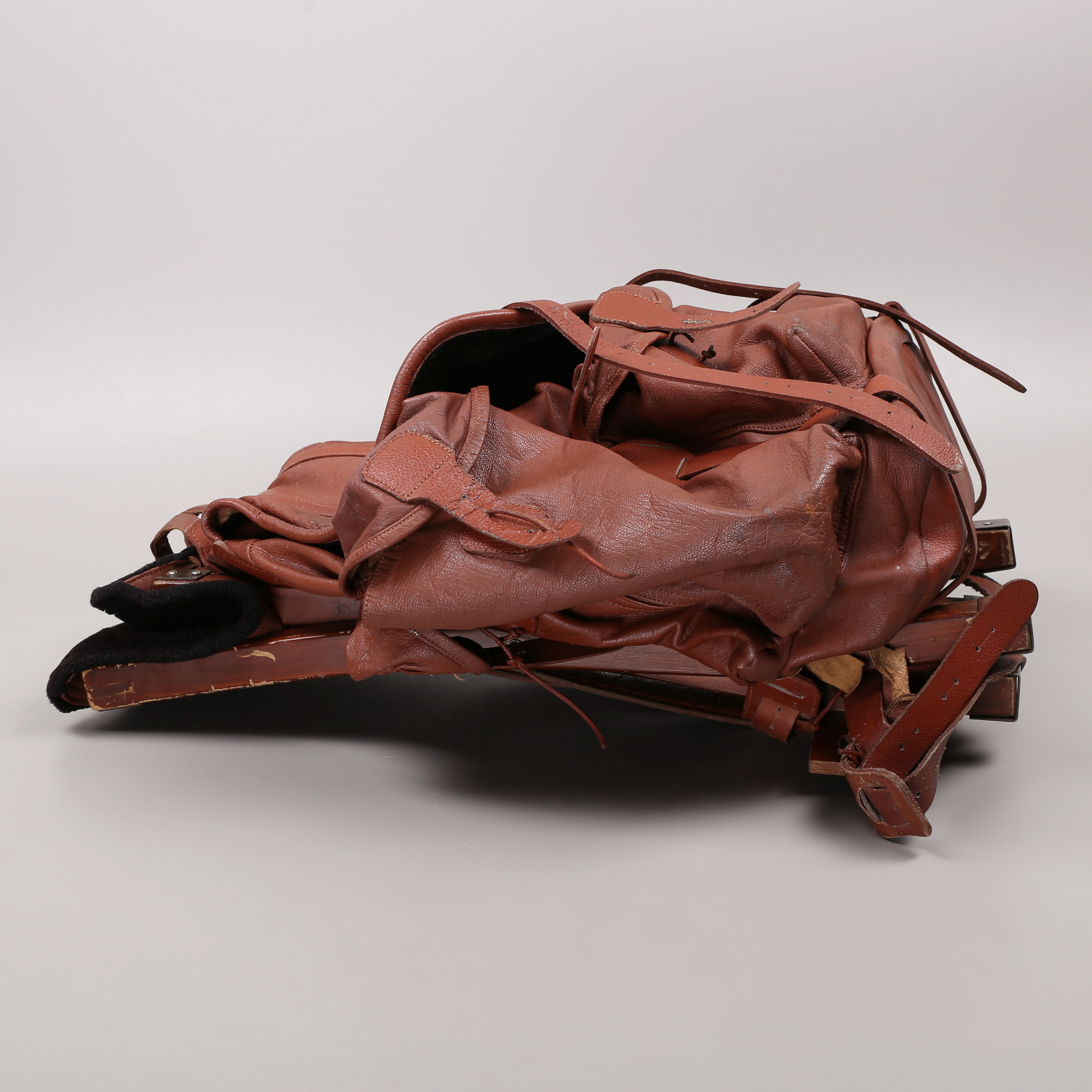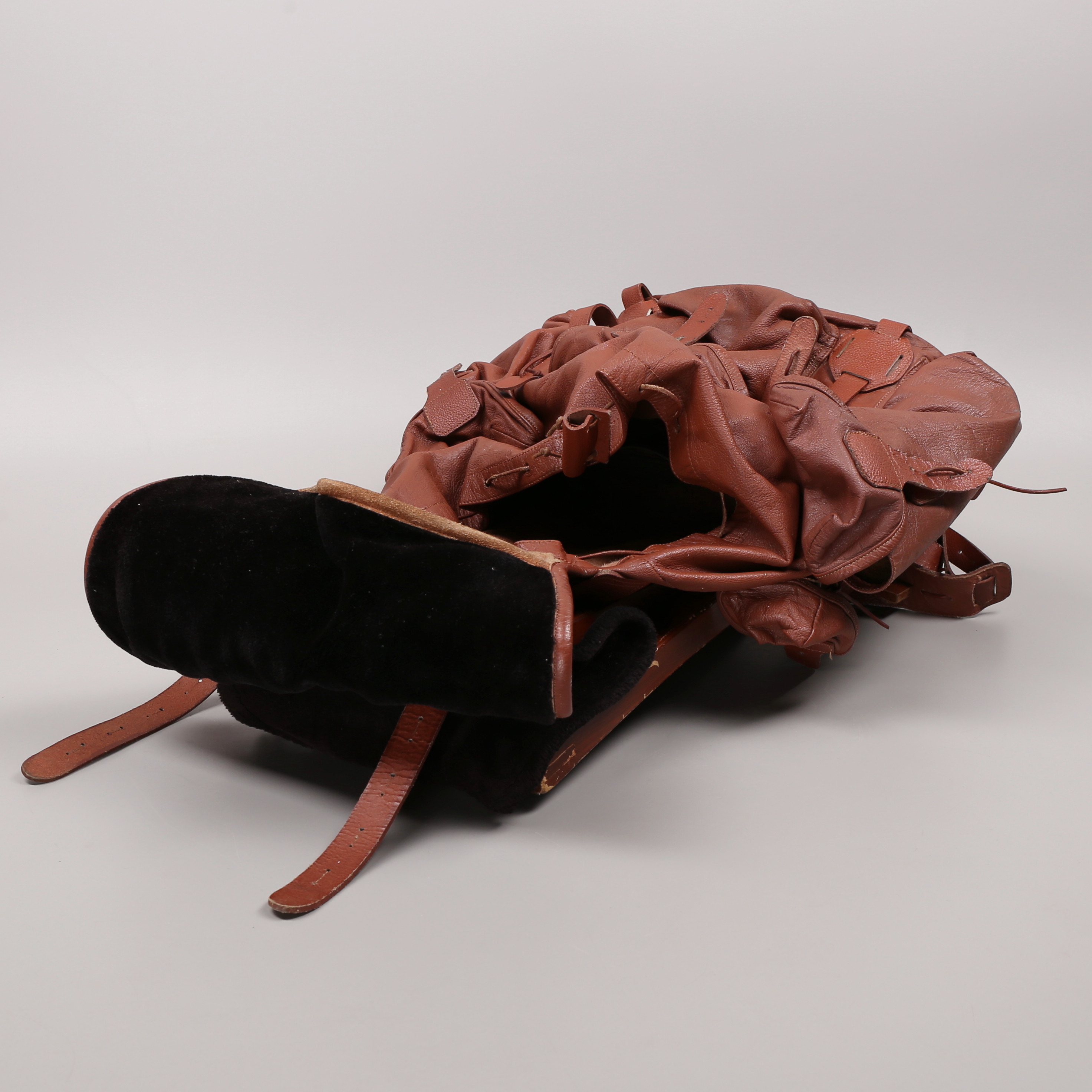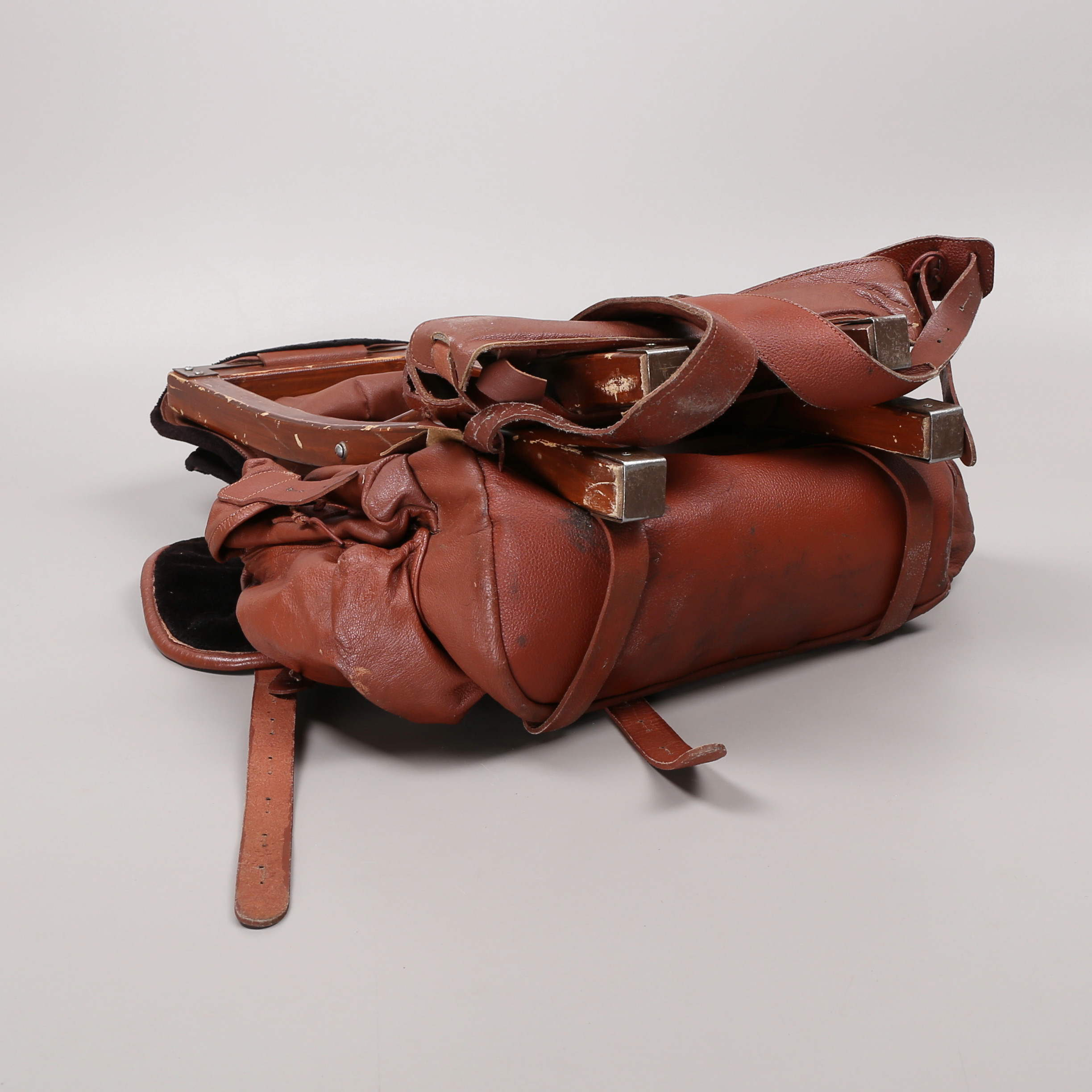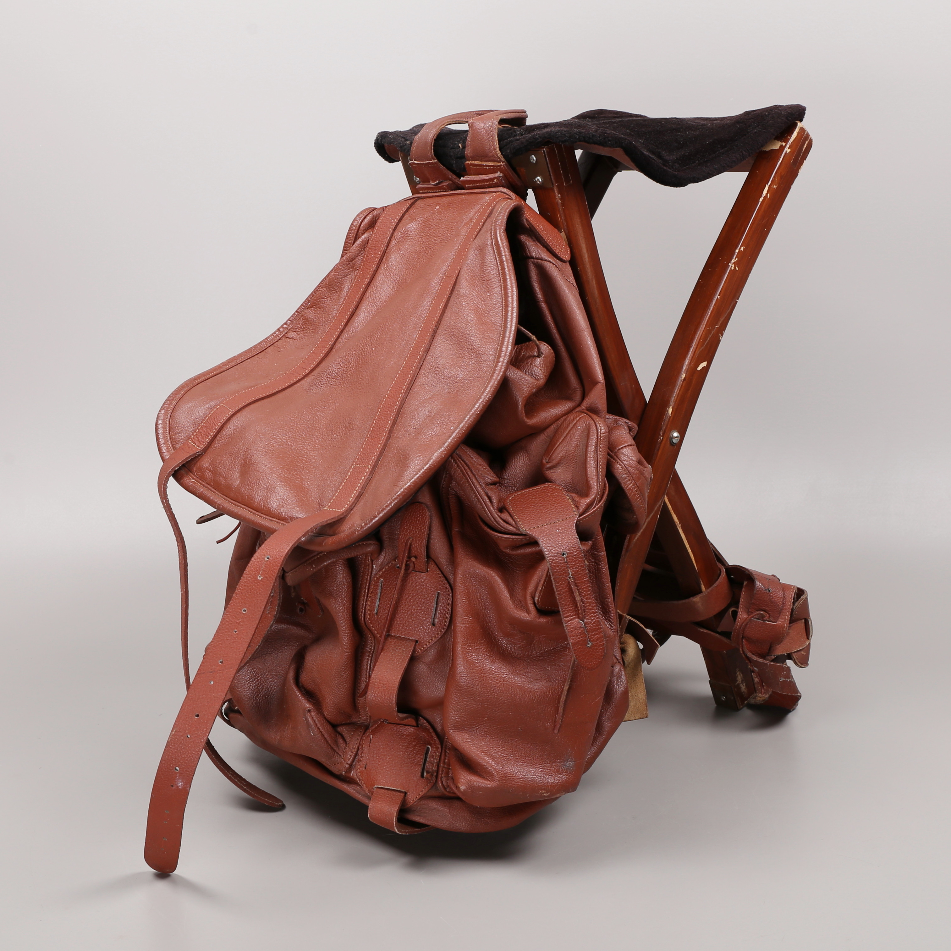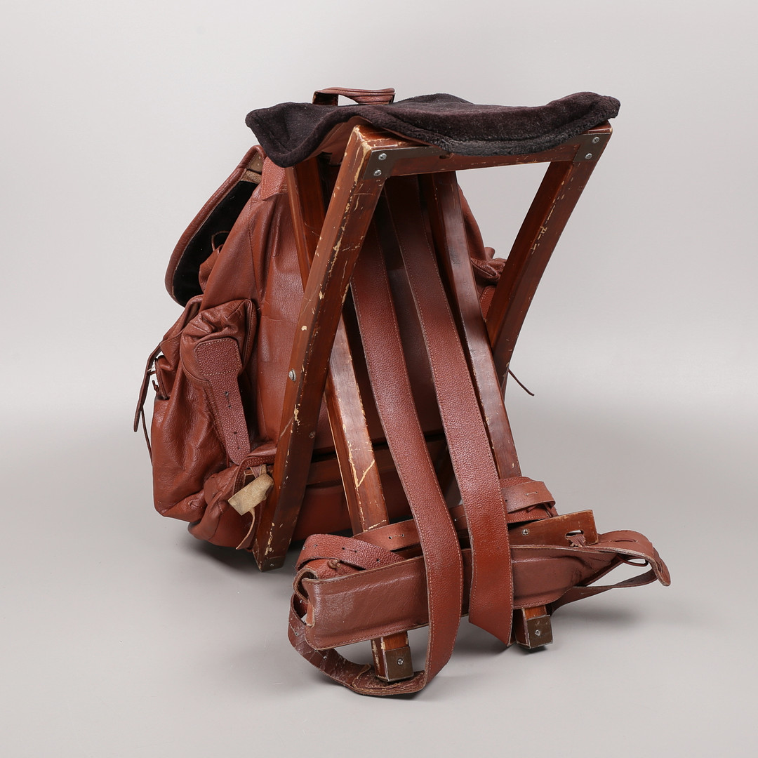2864587. METSÄSTÖREPU, jossa taitettava tuoli, nahkaa.