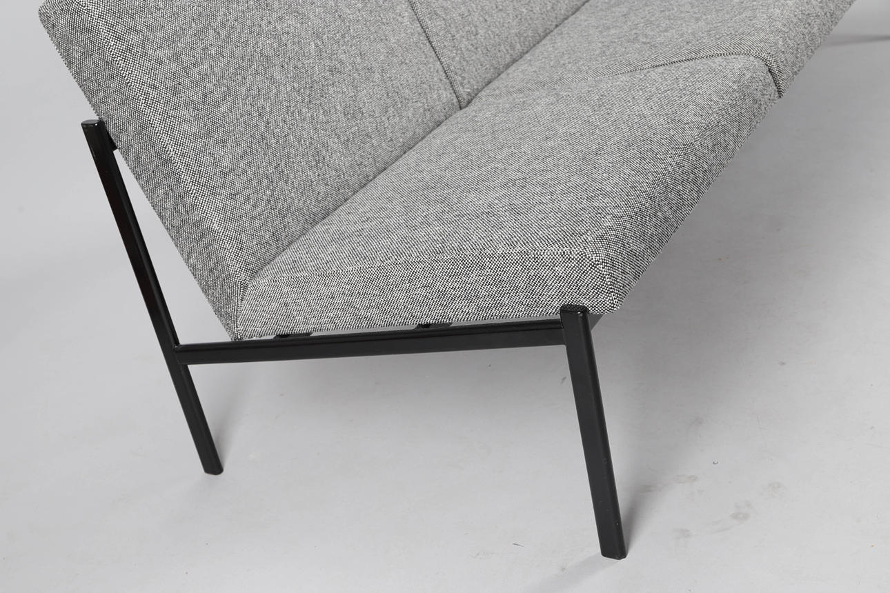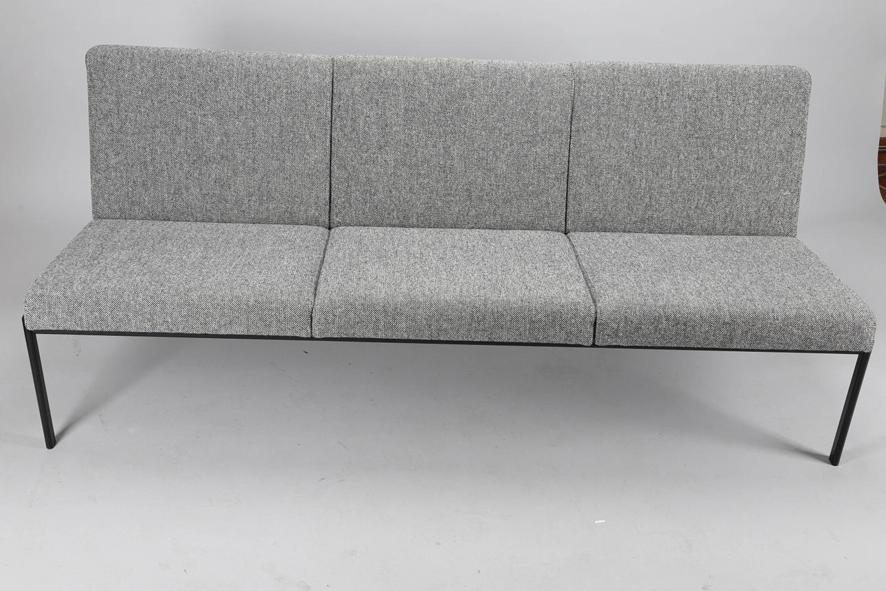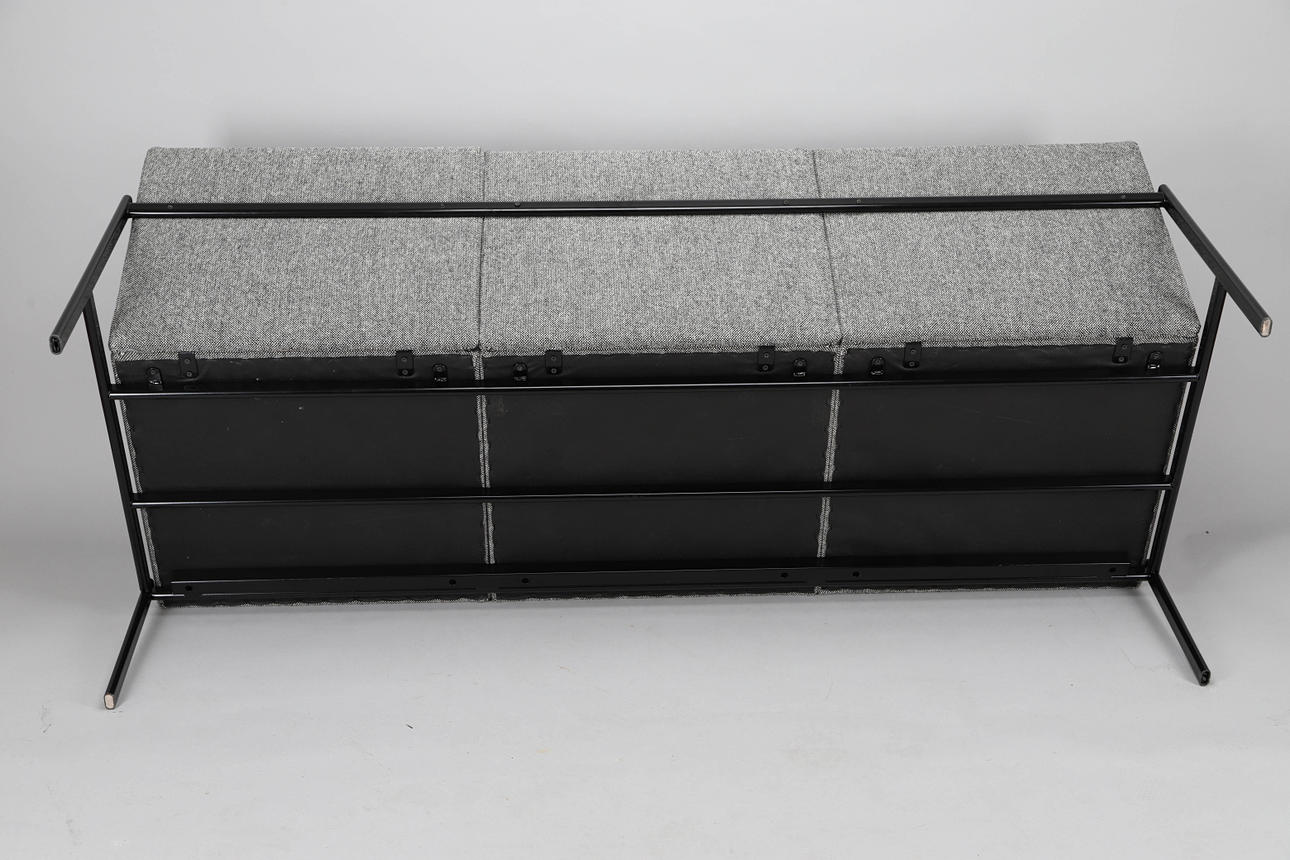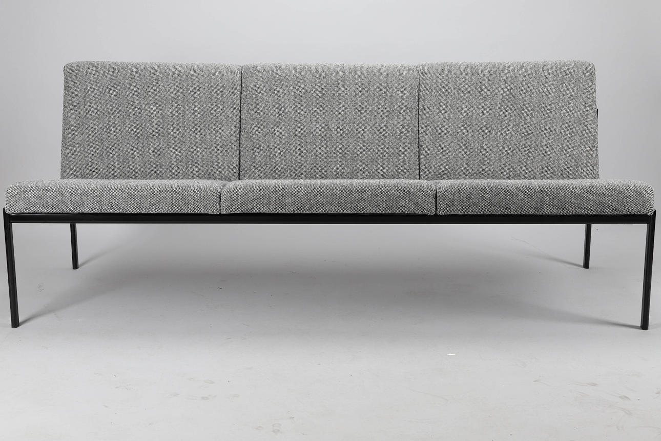 Artekin Kiki kolmen istuttava sohva päällystetty villakankaalla Kvadrats Hallingdal 65 0166, musta jauhemaalattu pohja.