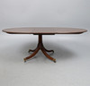 muotoiltu reuna soikea yläosa, jossa on lisälehti, aseen piipussa sorvattu pylväs ja muotoiltu alaspäin käännetty neliosainen pohja, messinkihatuilla ja pyörillä, 152 cm leveä x 112 cm syvä x 72,5 cm korkea, 198 cm leveä pidennetty.