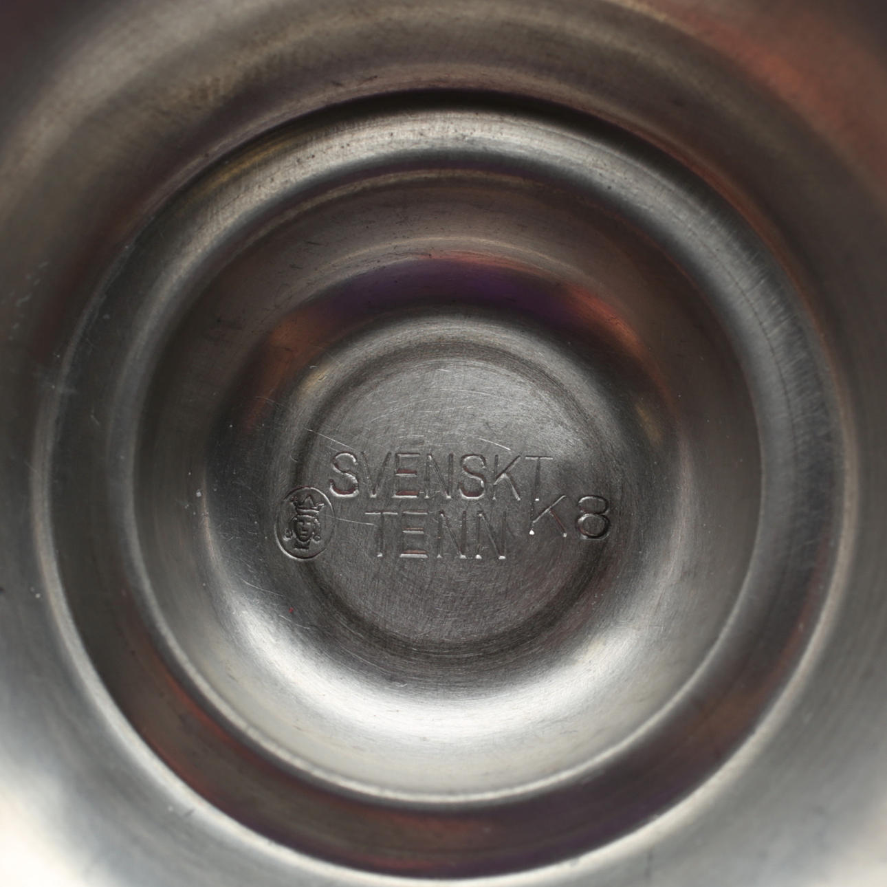 Merkitty "ruotsalainen tina, paikkaleima ja K8.