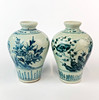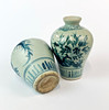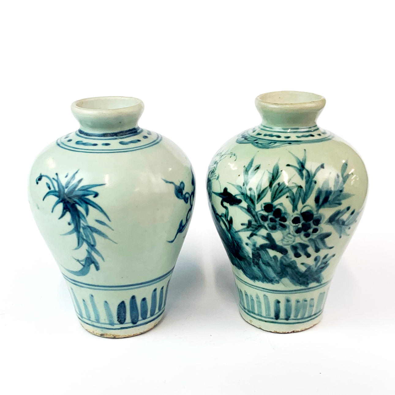 Kaksi pientä kiinalaista käsinmaalattua posliinimaljakkoa, K. 12,5cm.