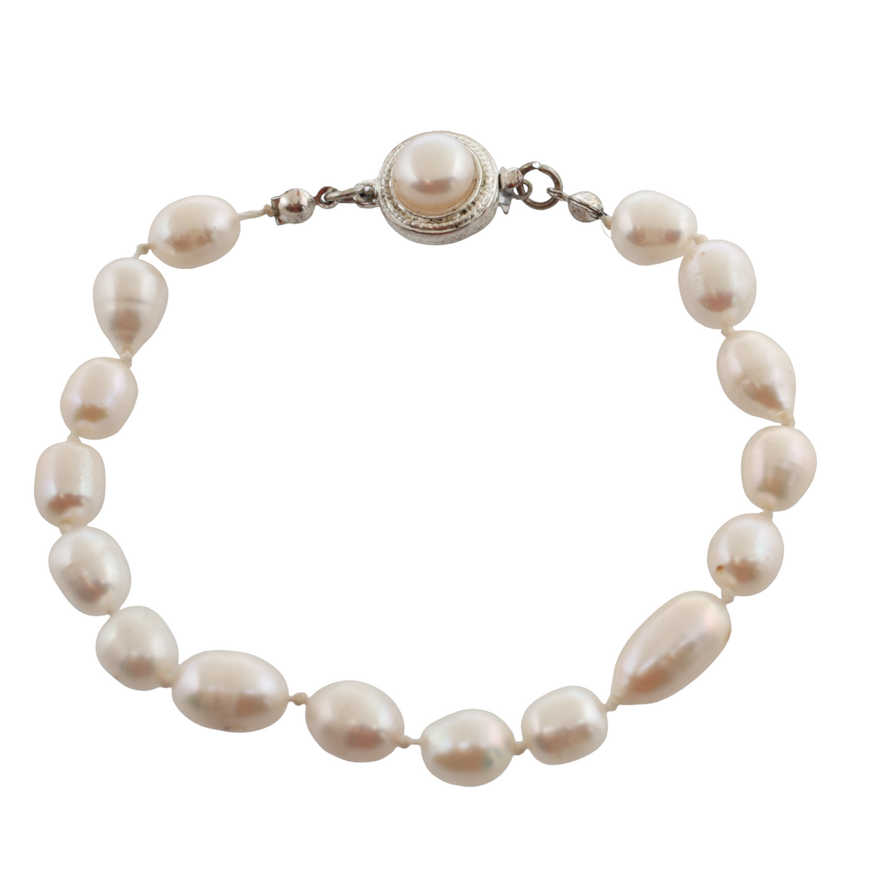 Kaulakoru, pituus n. 60 cm, barokkiväriset soikeat helmet, halkaisija n. 7-8 mm, pituus n. 9 - 12 cm.