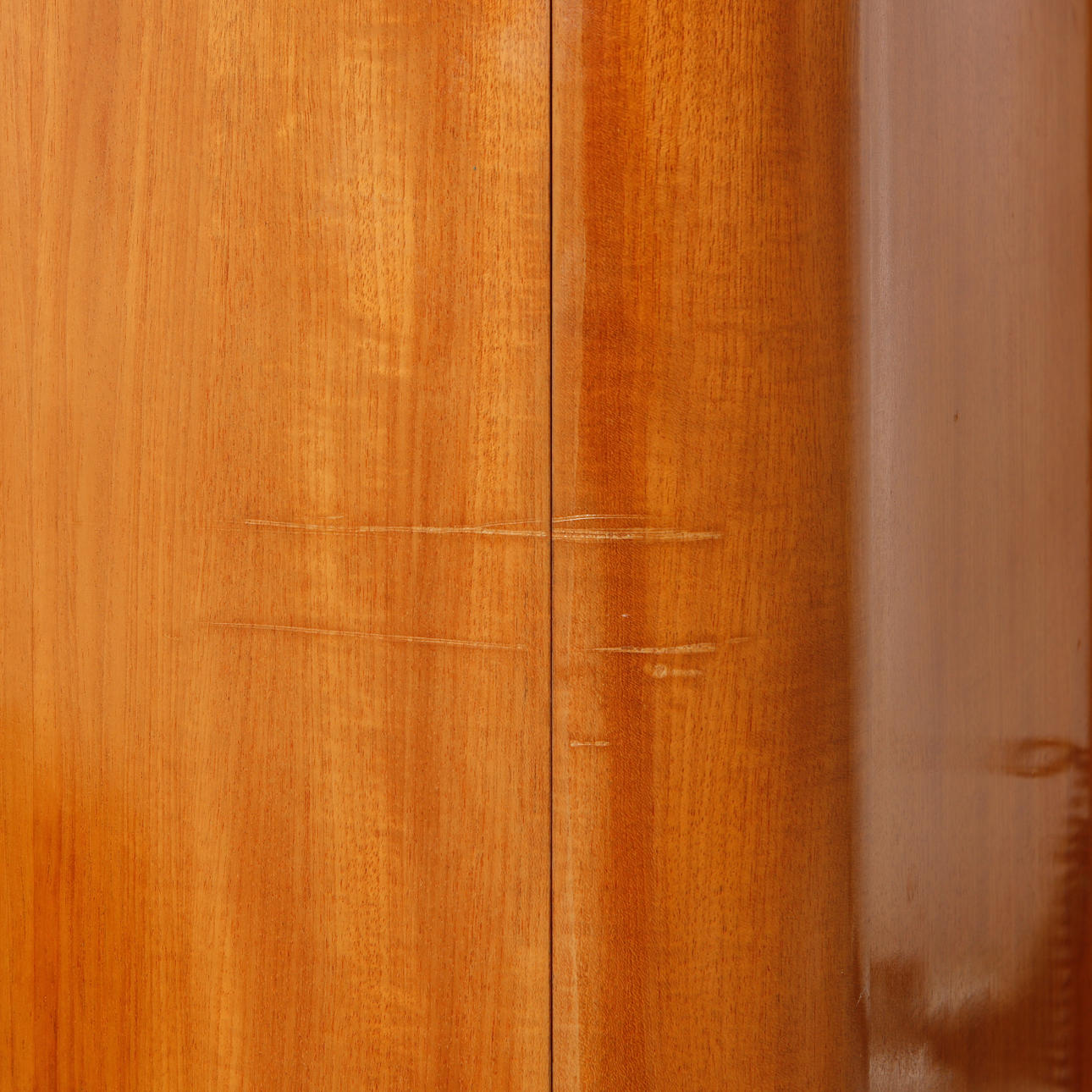 Viilutettu pääasiassa jalavalla. Ovipari, jonka alla on hylly ja kaappi. Leveys n. 86 cm, syvyys 41 cm, korkeus 140 cm.