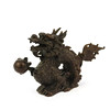 Pronssinen nuoren lohikäärmeen hahmo leikkimässä pallolla, K. 5,5cm.