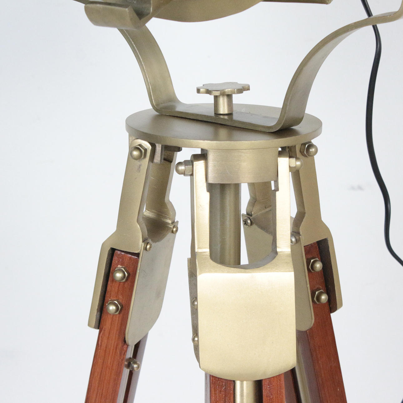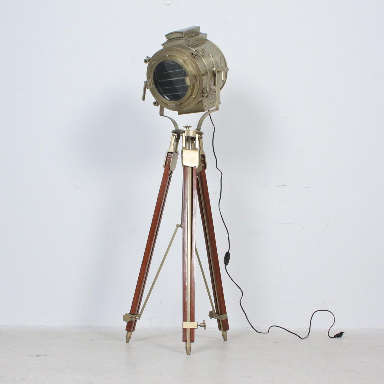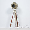 Kolmijalkainen lattiavalaisin, metalli/puu, kolmijalka, mitat n.: Korkeus 140 cm, korkeus säädettävissä.